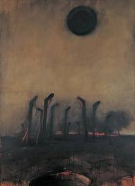 Et enfin, une série sûrement plus autobiographique, les feux et les gibets, qui ne sont pas sans rappeler le sort de Belgrade lors de la deuxième guerre mondiale (plus de 2000 morts lors des bombardements d’approche). Ces images montrent désolation et destruction mais avec une approche esthétique certaine, comme si la dévastation du monde lui servait de beauté.