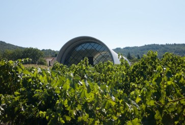 Dès l’arrivée, le ton est donné avec la cuverie, bâtiment industriel métallique de Jean Nouvel, stridence industrielle sur le vert du paysage.