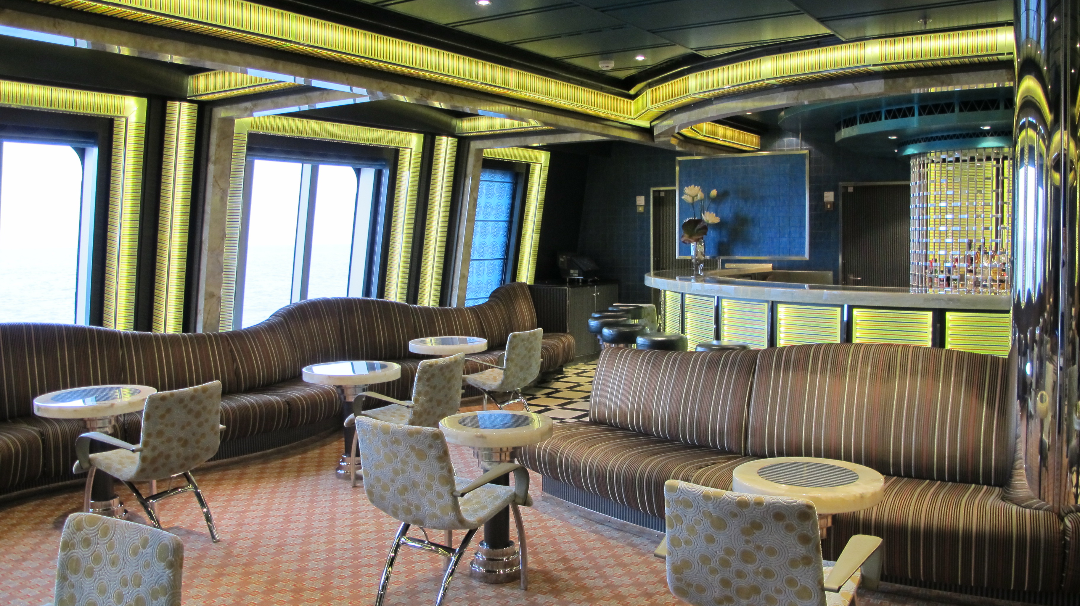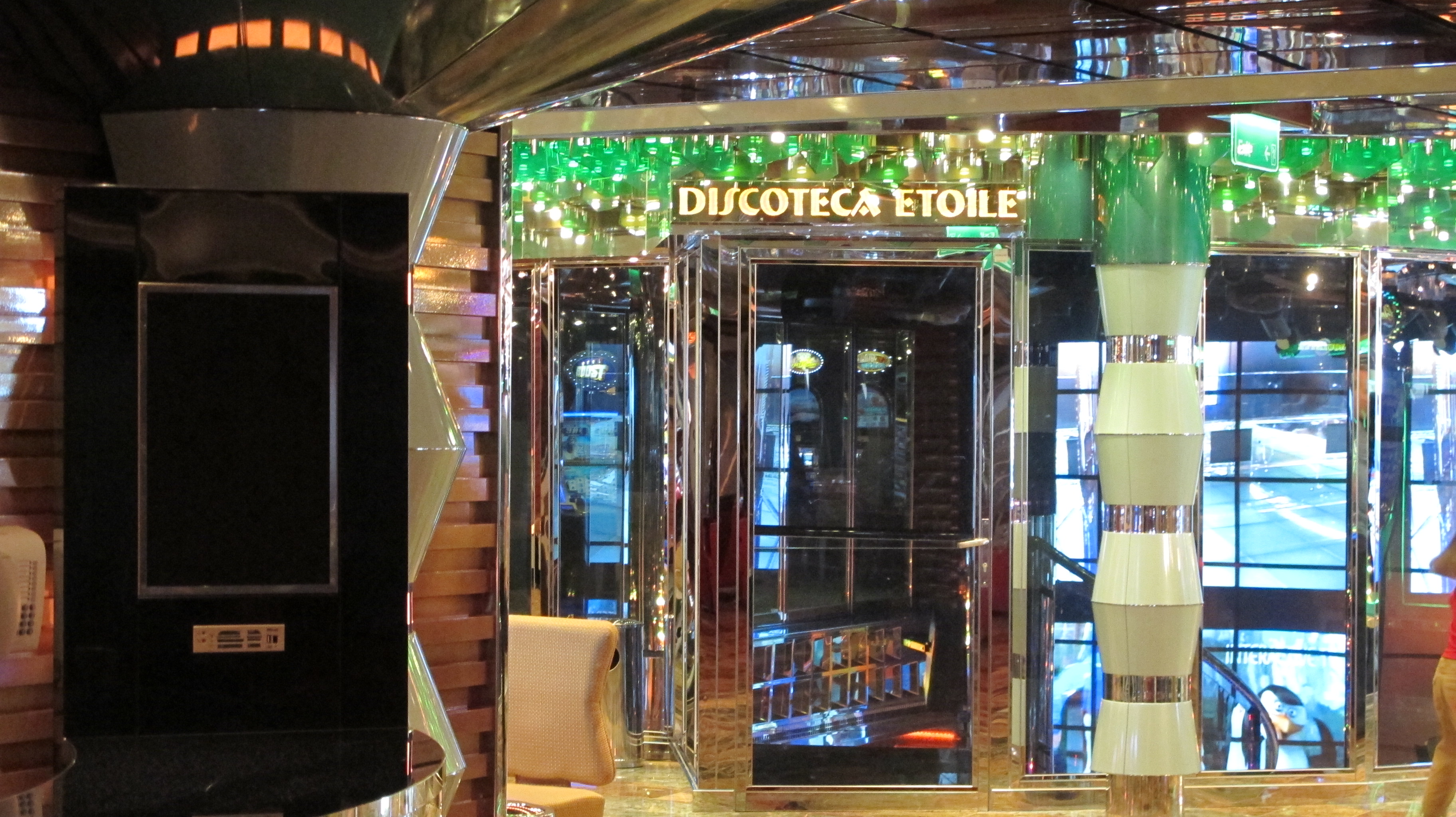 Le bateau est somptueux. Lorsque l’on sait que la Société Costa, italienne, a été reprise par des Américains, nous comprenons mieux cette esthétique spéciale, qui s’apparente à celle de Las Vegas notamment. Un idéal de richesse mâtinant les valeurs du Vieux Continent (le bateau comprend un « salon Molière » et un « salon Pompadour », la référence à Versailles est claire et assumée) et une sorte de « néo-clinquant » fait de palissandre, de moquettes moelleuses et de milliers d’ampoules (une ampoule c’est normal, mille ampoules, c’est Costa ;-)).