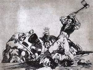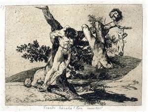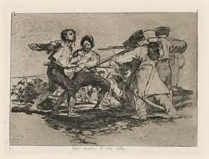 Sans parler des autres oeuvres présentes, magnifiques, je voudrais me focaliser sur la série des gravures à l’eau forte dite « Les désastres de la guerre », qui en plus de 80 planches, montre les atrocités de la guerre Napoléonienne en 1808, année où Napoléon Bonaparte impose son frère Joseph sur le trône, dans une guerre sanglante. Cet épisode a été rendu célèbre par les tableaux du même peintre, « Dos de mayo » et « Tres de mayo ».