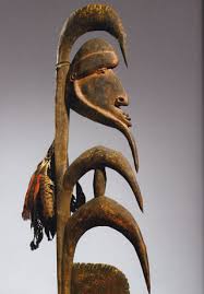 J’ai déjà eu l’occasion, à propos d’une magnifique exposition sur les Iles Marquises l’hiver dernier, de dire toute ma reconnaissance au Musée du Quai Branly (Paris) pour m’avoir fait découvrir ces autres civilisations, dans toutes leurs dimensions cachées, d’une manière telle qu’elle vous ouvre vers quelque chose de différent, propre à vous faire réfléchir sur vous-même. Il y a quelques années, partie nez au vent de chez moi pour arpenter la ville, j’ai décidé de porter mes pas vers ce musée inconnu, dans une claire lumière de printemps. Bien m’en a pris, car je suis restée en arrêt devant tant de beauté, m’attardant dans la semi-pénombre des salles avec la gourmandise d’un enfant lâché dans un magasin de bonbons. Si j’ai été saisie par l’art de l’Afrique, avec sa statuaire énigmatique, j’ai eu un vrai coup de coeur pour l’art de Papouasie-Nouvelle Guinée qui m’a semblé bien plus merveilleux. Je dois rendre hommage à la clarté des explications muséographiques, qui, dans une langue simple et didactique, montrent toute l’envie des conservateurs de partager et transmettre.