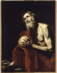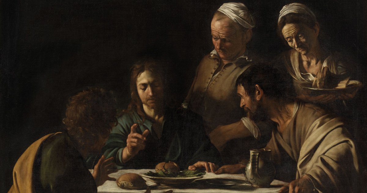 Thanatos est l’autre filigrane de l’oeuvre. Au-delà des sujets traités par le peintre, qui ne sortent pas de ceux de l’époque, religion catholique et antiquité en majorité, qui portent en eux-mêmes maints motifs de mort (pensons seulement au martyres chrétiens), le peintre réussit à faire passer une autre idée, d’une manière intemporelle, sur notre destin de mortels. En représentant les corps avachis par la vieillesse (voir plus haut le « Saint-Jérôme » ou ci-dessous « Les pélerins d’Emmaüs »), tellement fragiles et qui nous disent tant sur la proximité de la mort. Contempler le bras noueux de Saint-Jérôme ainsi que sa silhouette décharnée vaut pour moi toutes les leçons théoriques sur la destinée fatale de l’Homme. Il allait chercher ses modèles dans les tavernes, parmi les gens du peuple un peu échoués, ce qui est d’une grande nouveauté, tranchant avec les images un peu lisses d’avant, introduisant une vérité jusque-là non approchée.