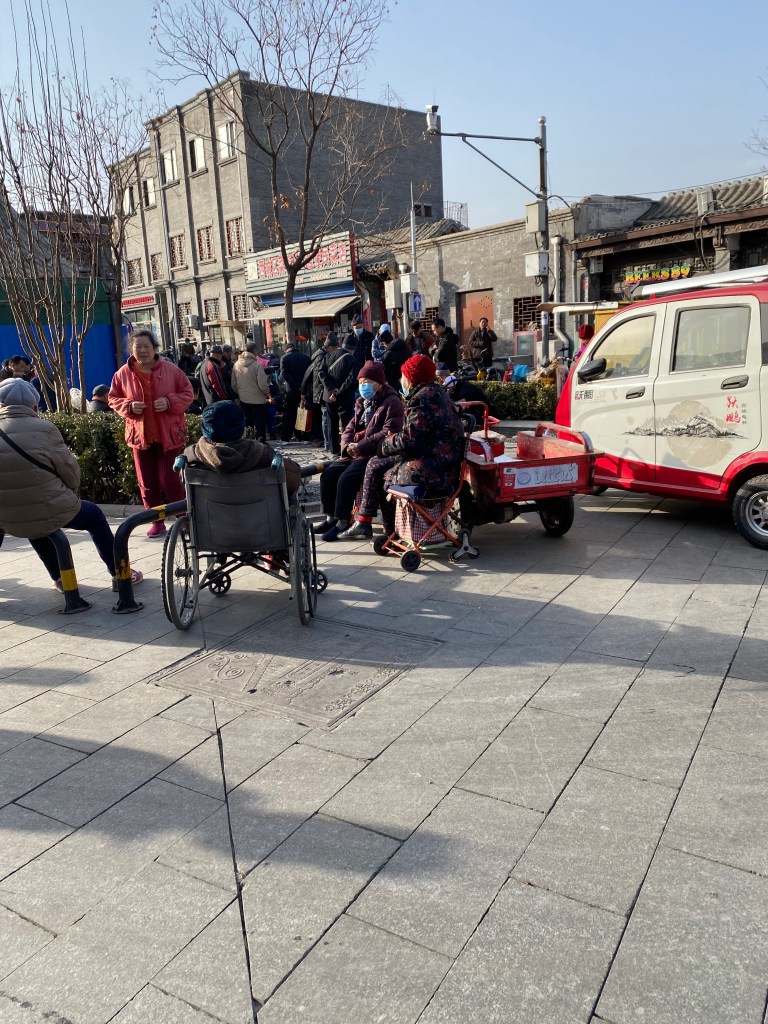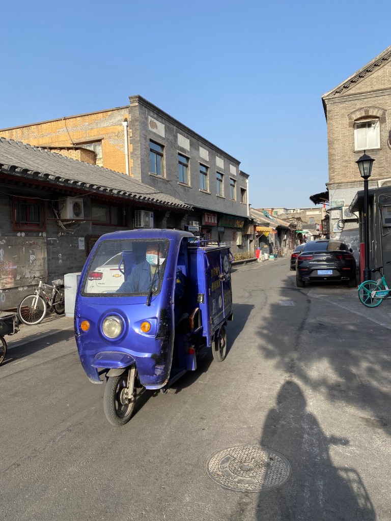 Et donc ce samedi matin au ciel bleu, après mes deux heures de chinois ( 🙂 ), j’ai pris la clé des champs pour aller au sud-ouest où m’attendaient une mosquée et quelques petits temples, dans le quartier musulman de la capitale. Après un court voyage en métro (7 kms), j’ai refait surface le long d’une six voies pour bifurquer quelques dizaines de mètres après sur la droite dans un hutong (胡同) avec les précautions d’usage, scan d’un Q/R code et prise de température, sous les yeux d’un vieil homme fatigué en tenue matelassée et policière.