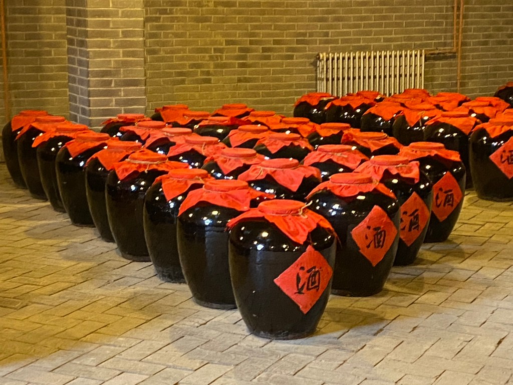 J’ai visité là une distillerie de cet alcool si célèbre dans le pays, le Baijiu (白酒 – alcool blanc, prononcez baydzio), fait de la distillation de cinq céréales (ne me demandez pas la proportion, j’ai déjà réussi à traduire les noms des céréales en français !). Citons ici le millet, le sorgho, le riz, le maïs et le blé. Après les opérations techniques, l’alcool, qui titre entre 45 et 60° est mis en jarre, le récipient de terre remplaçant ici nos fûts de chêne.