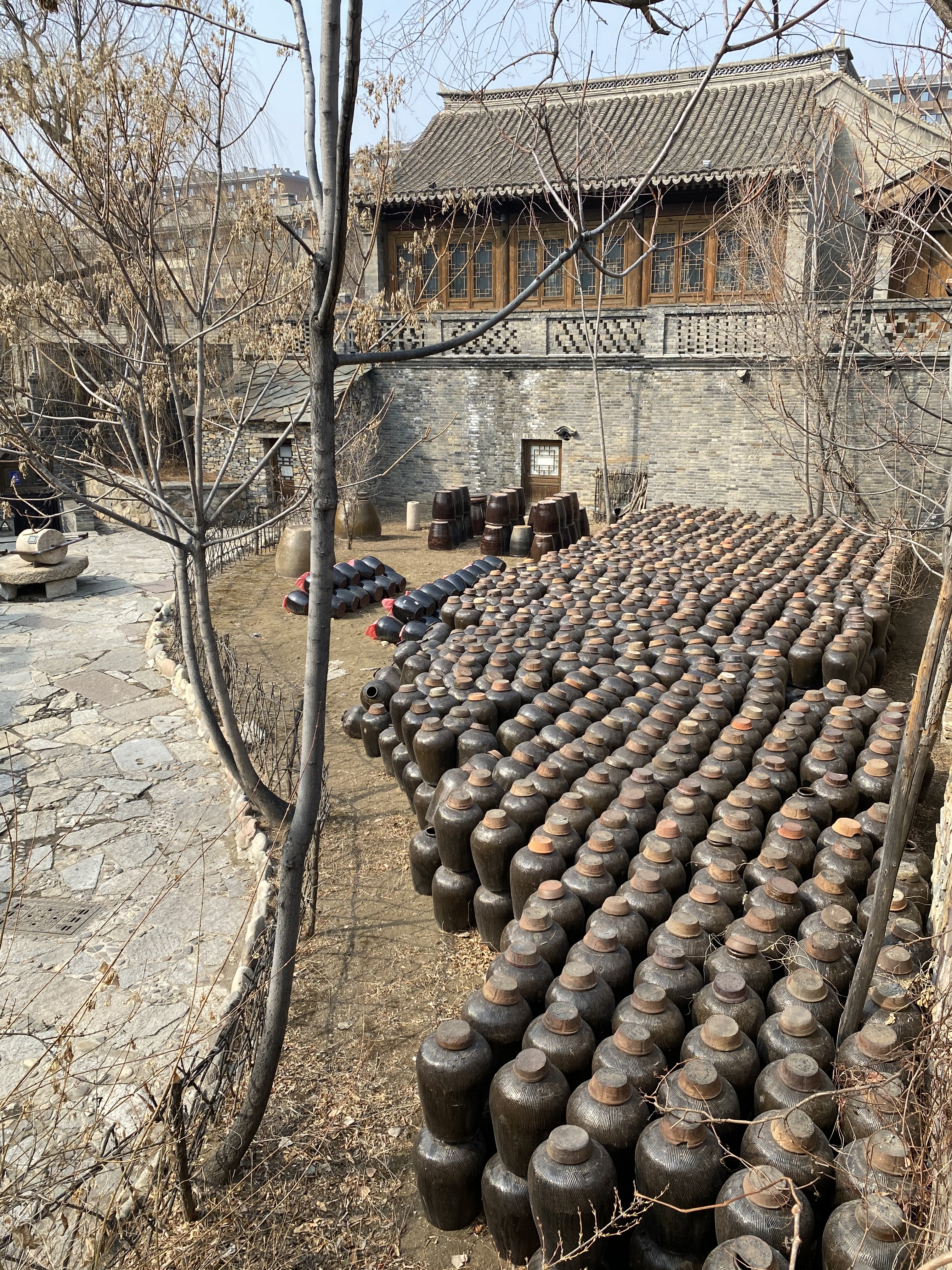 J’ai visité là une distillerie de cet alcool si célèbre dans le pays, le Baijiu (白酒 – alcool blanc, prononcez baydzio), fait de la distillation de cinq céréales (ne me demandez pas la proportion, j’ai déjà réussi à traduire les noms des céréales en français !). Citons ici le millet, le sorgho, le riz, le maïs et le blé. Après les opérations techniques, l’alcool, qui titre entre 45 et 60° est mis en jarre, le récipient de terre remplaçant ici nos fûts de chêne.