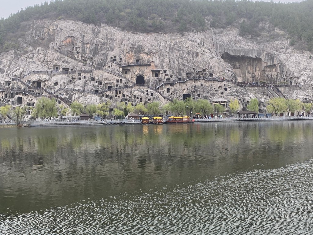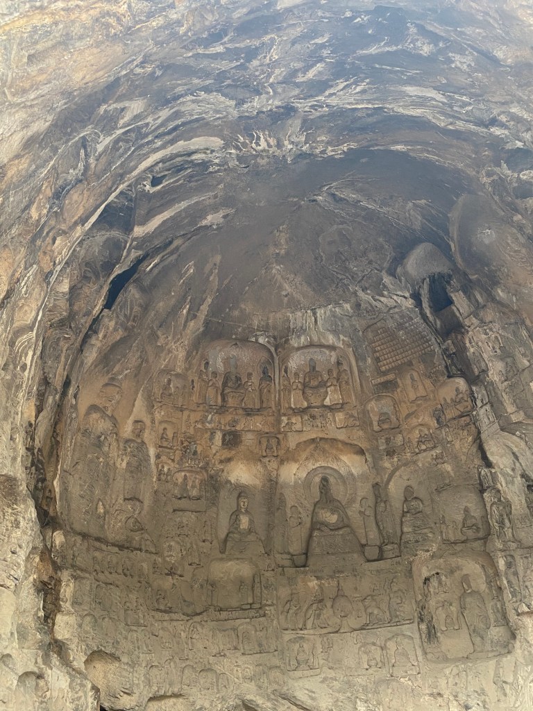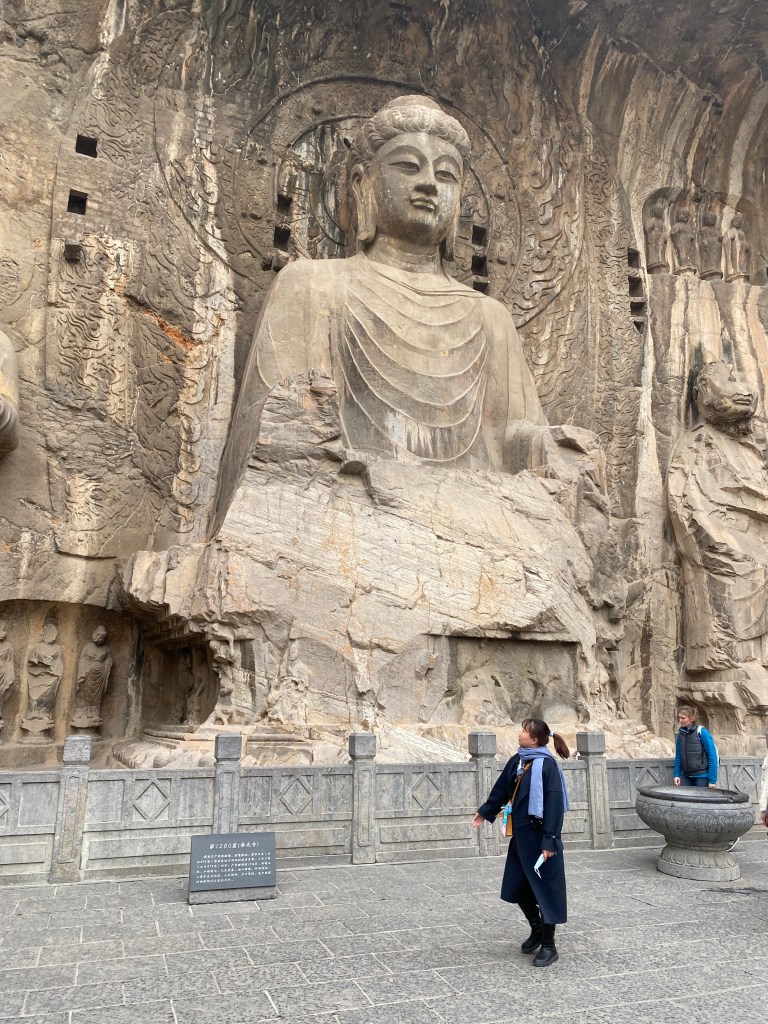 Notre périple a commencé par les grottes de Longmen (Porte du dragon), un ensemble de grottes bouddhistes excavées entre le Ve et le Xe siècle au flanc d’une falaise qui surplombe la rivière ; les chiffres donnent le vertige, plus de 2300 grottes et plus de 100 000 images ou sculptures bouddhistes.