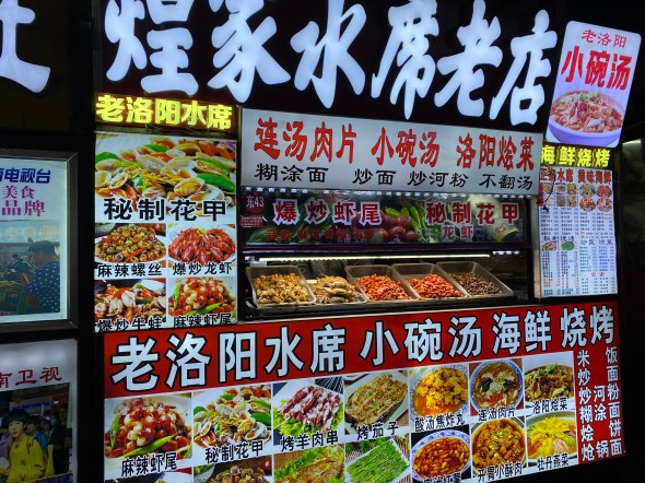Retour dans la ville, notre guide nous entraîne dans un marché de nourriture nocturne (un « food court » en somme), où des échoppes alignées de part et d’autre de la rue offrent leurs denrées. Un retour dans le monde actuel, qui fait un vrai contraste avec ce que nous avons vu auparavant.