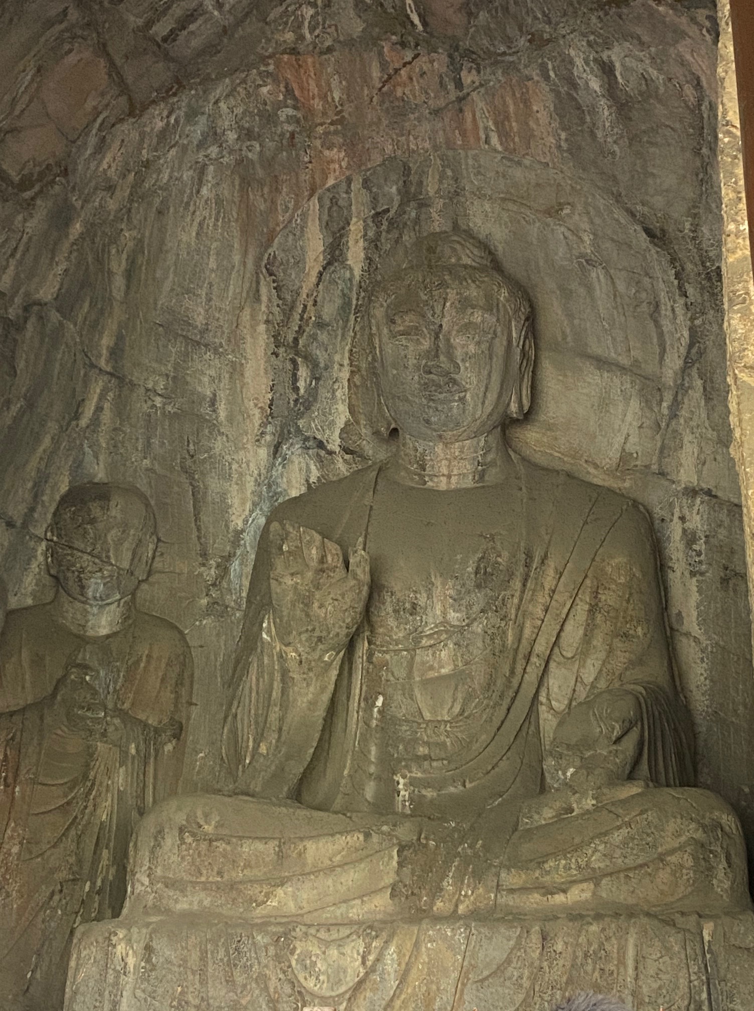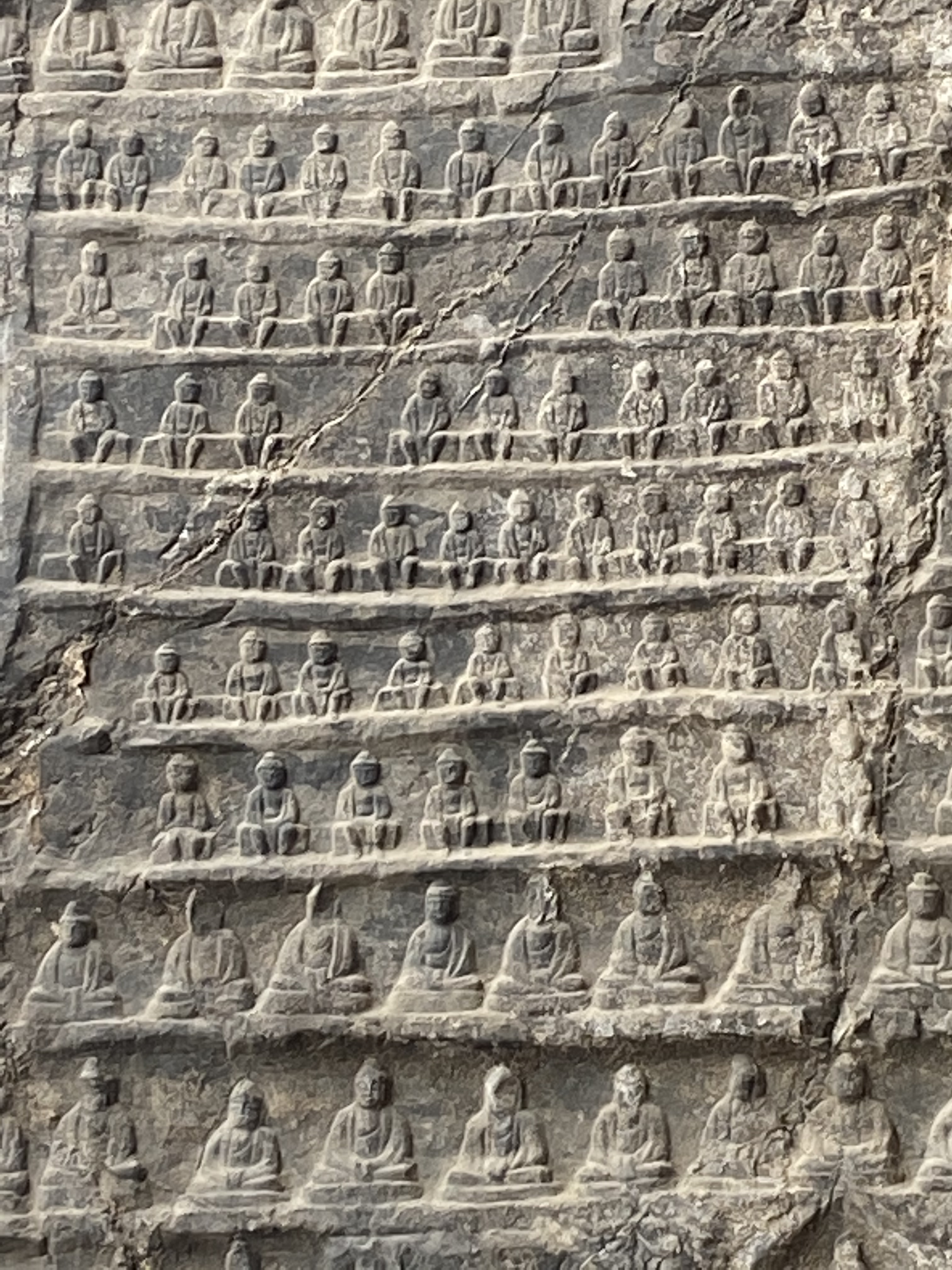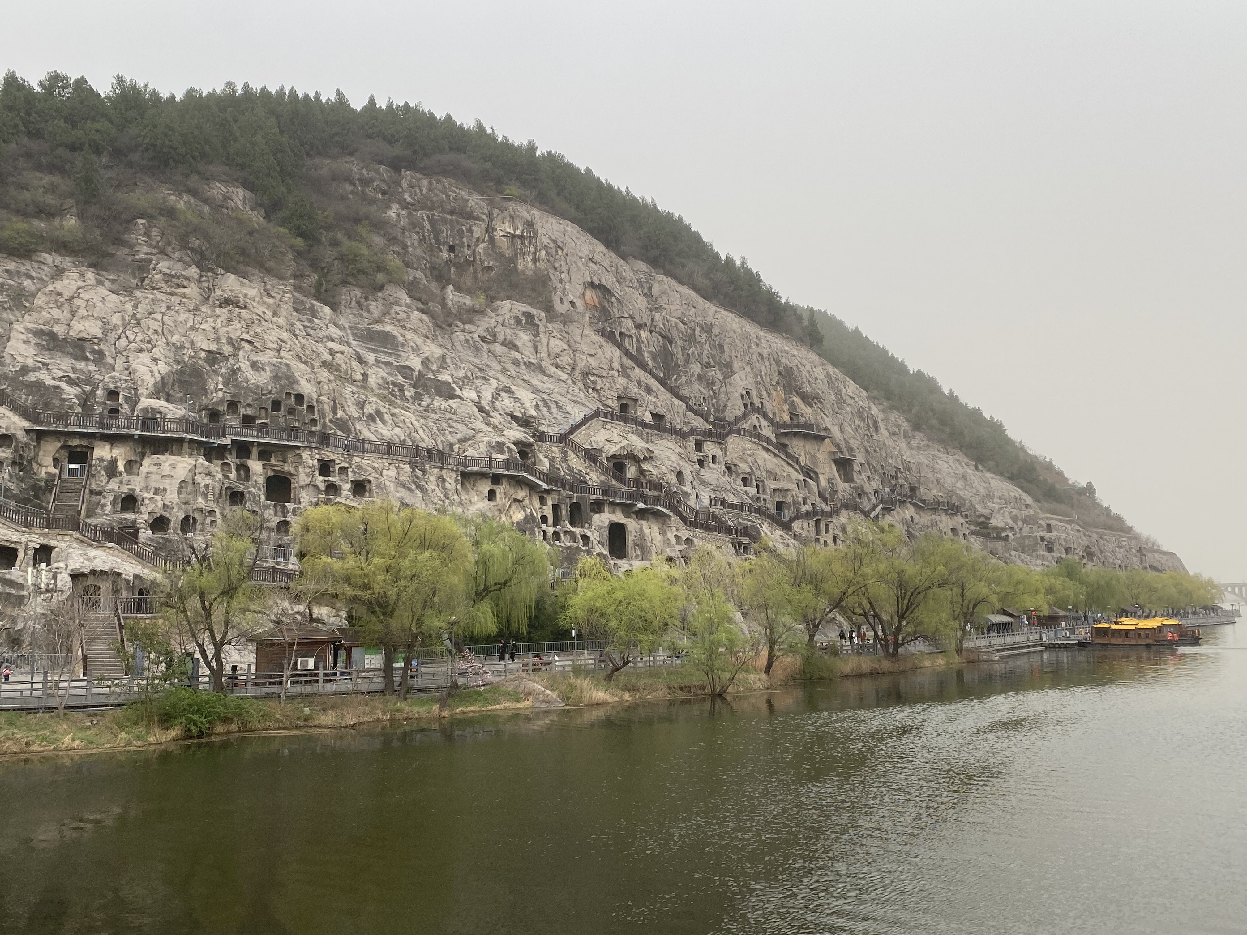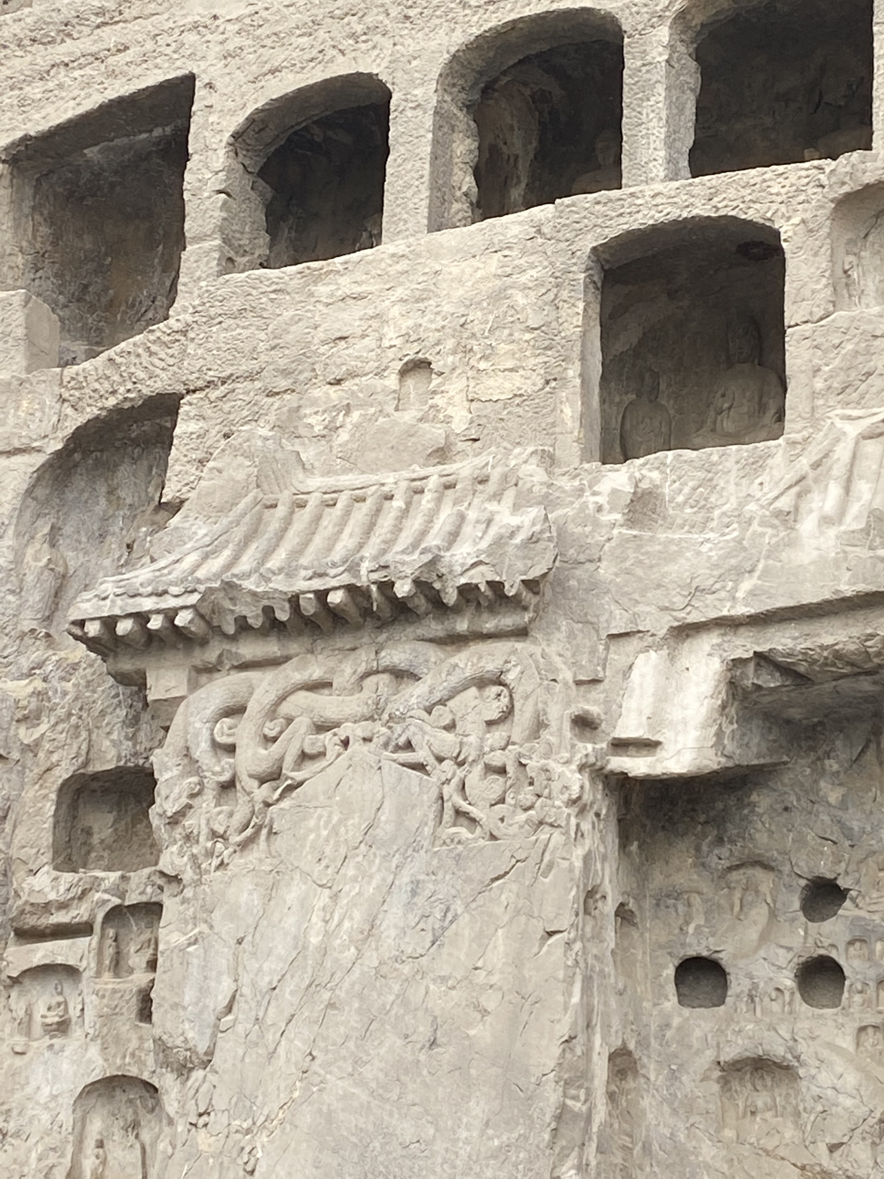 Notre périple a commencé par les grottes de Longmen (Porte du dragon), un ensemble de grottes bouddhistes excavées entre le Ve et le Xe siècle au flanc d’une falaise qui surplombe la rivière ; les chiffres donnent le vertige, plus de 2300 grottes et plus de 100 000 images ou sculptures bouddhistes.