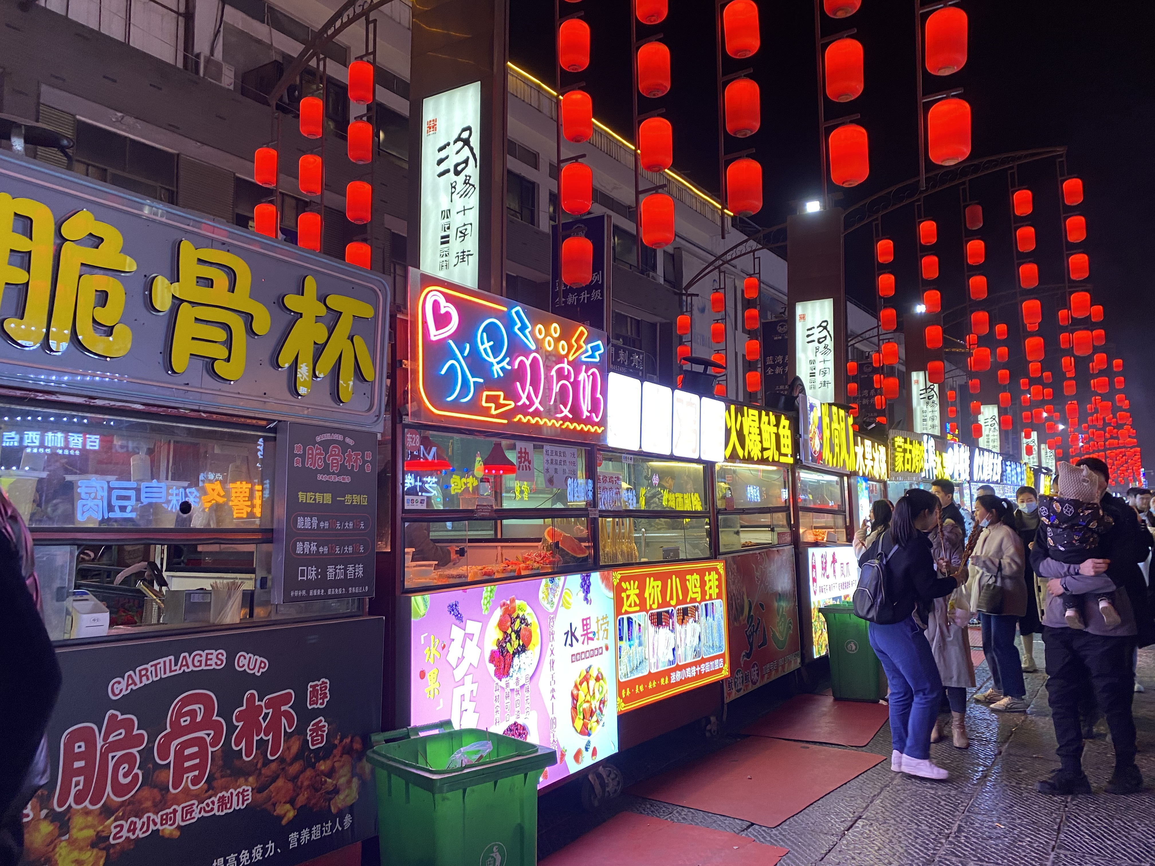 Les masques se font rares, bien que la foule soit compacte, nous sommes loin de Pékin et de sa rigidité en la matière, et l’époque est plus détendue aussi. Des passants d’un samedi soir qui arpentent les rues pour se restaurer, dans une ébullition joyeuse et entraînante.