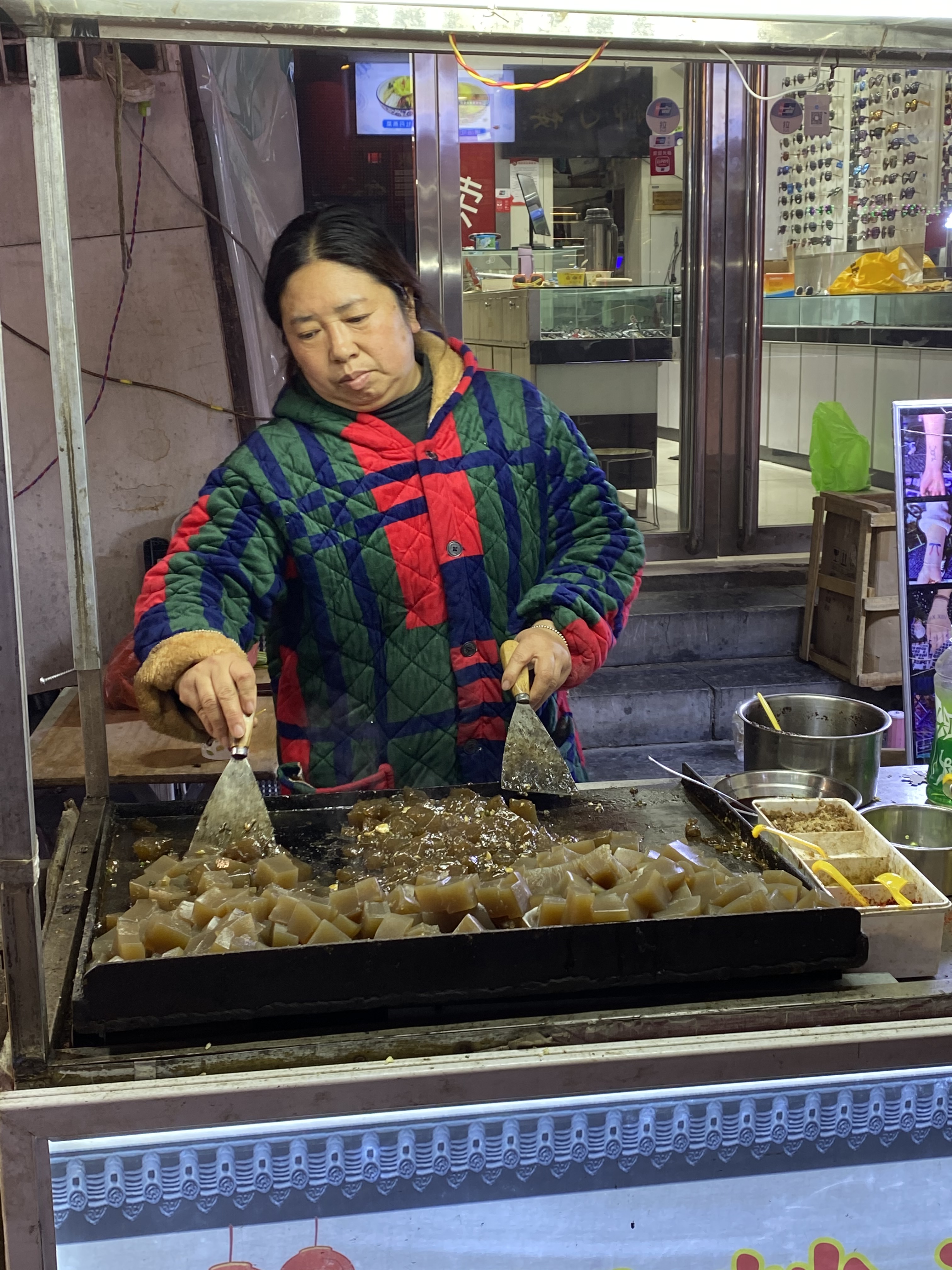 Retour dans la ville, notre guide nous entraîne dans un marché de nourriture nocturne (un « food court » en somme), où des échoppes alignées de part et d’autre de la rue offrent leurs denrées. Un retour dans le monde actuel, qui fait un vrai contraste avec ce que nous avons vu auparavant.