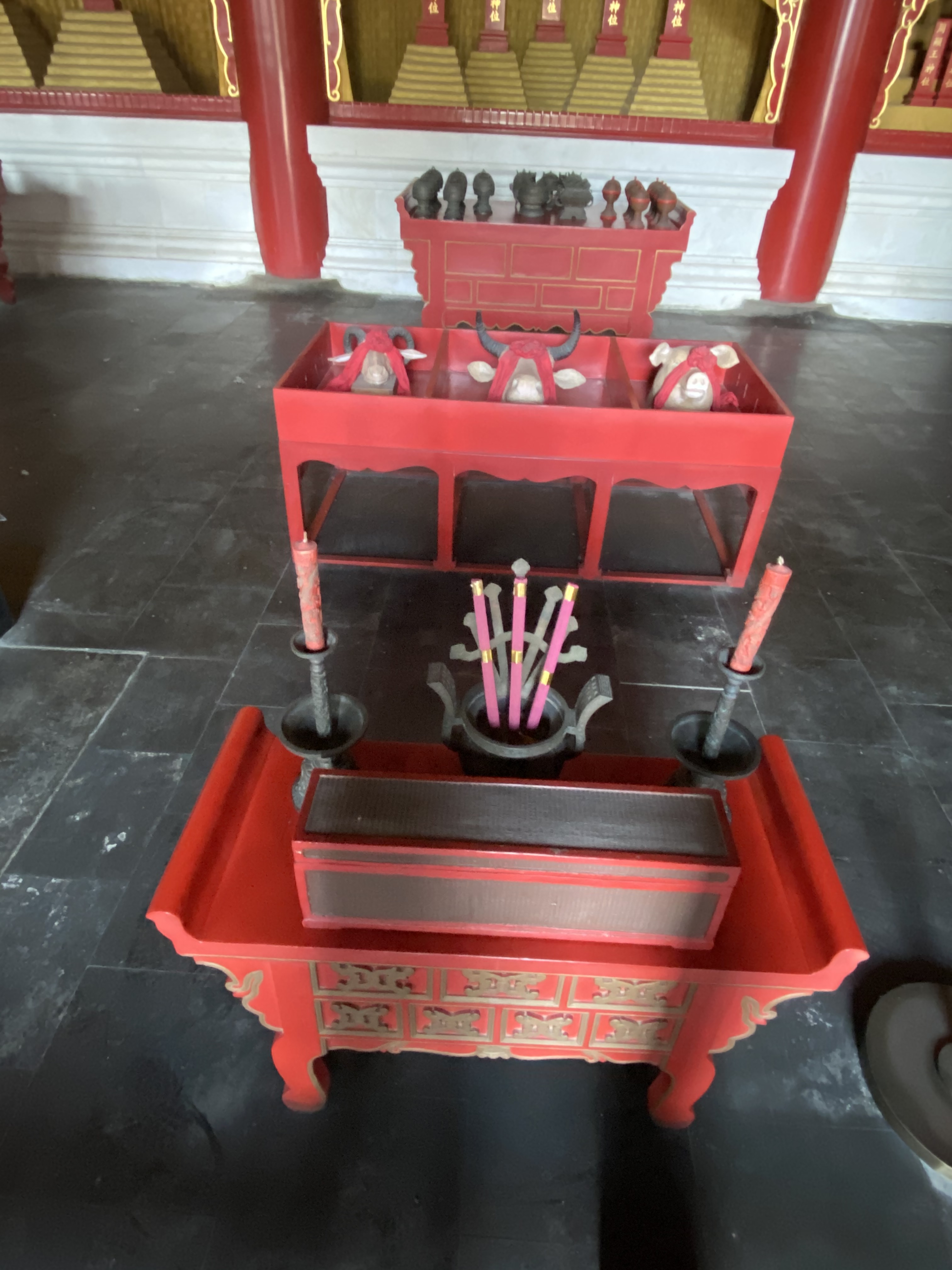 En suivant la rue est-ouest où j’avais trouvé cette église j’ai croisé sur ma route le Temple des Anciens Monarques, construit au XVIe siècle (avec les précautions d’usage que vous connaissez, impossible de savoir ce qui est d’origine) ; ici étaient célébrés les empereurs des anciennes dynasties, par des sacrifices dont les édifices gardent ici la trace. Nous voyons ainsi au fur et à mesure de notre déambulation, l’édifice où étaient stockés les offrandes sacrificielles ou encore celui où étaient perpétués les sacrifices. Plus de 650 cérémonies rituelles ont été célébrées ici jusqu’au début du XIXe siècle, en vénération des différents empereurs.