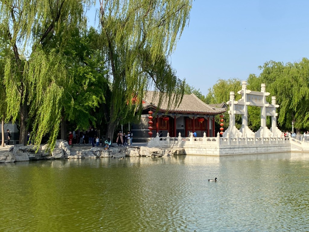 Cette pérégrination d’un pavillon à l’autre nous faisait côtoyer des moments de vie de tous les jours, c’est un parc ordinaire (quoique le prix d’entrée à 40 RMB, soit 5 euros, ne permette pas des entrées quotidiennes, sauf à ce que les locaux aient un tarif préférentiel). Et pourtant, on voyait par exemple des gens qui chantaient ou s’adonnaient au Taijiquan (Tai shi, chez nous).