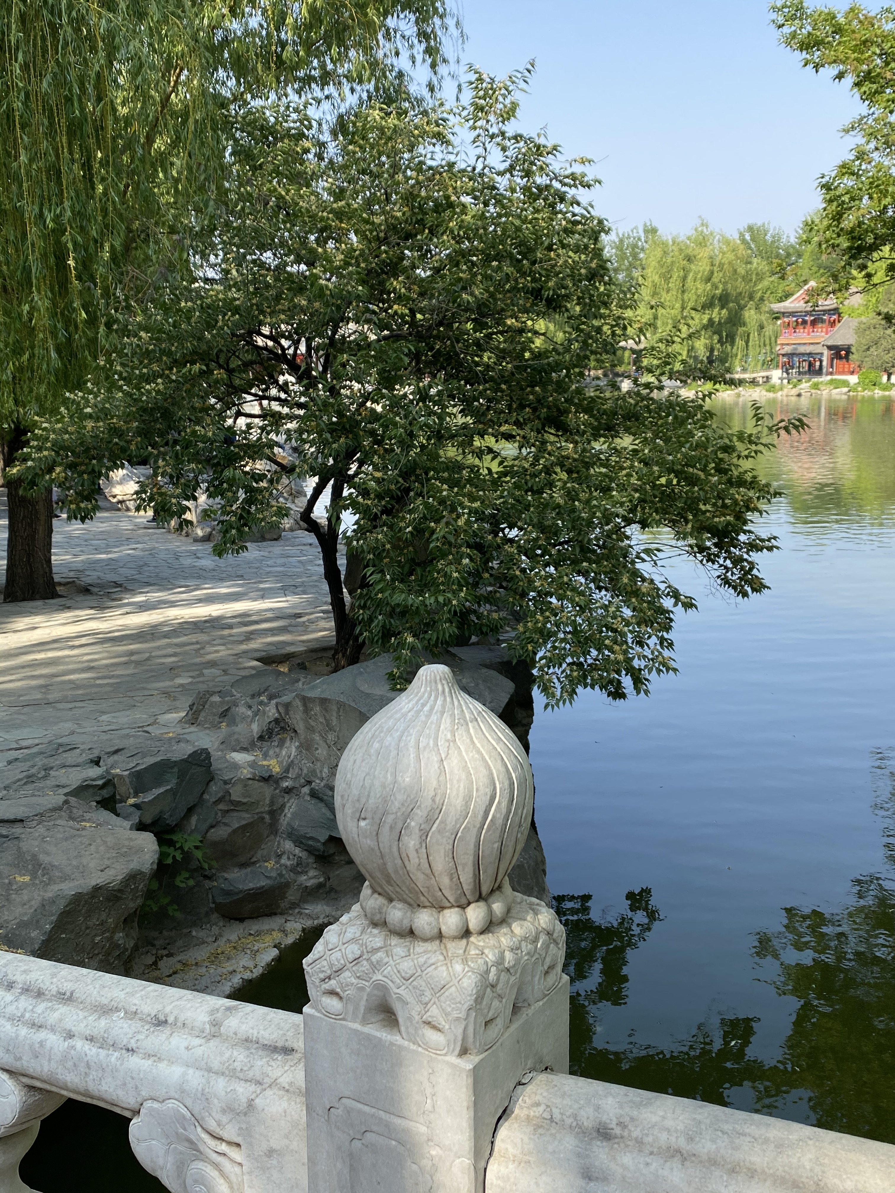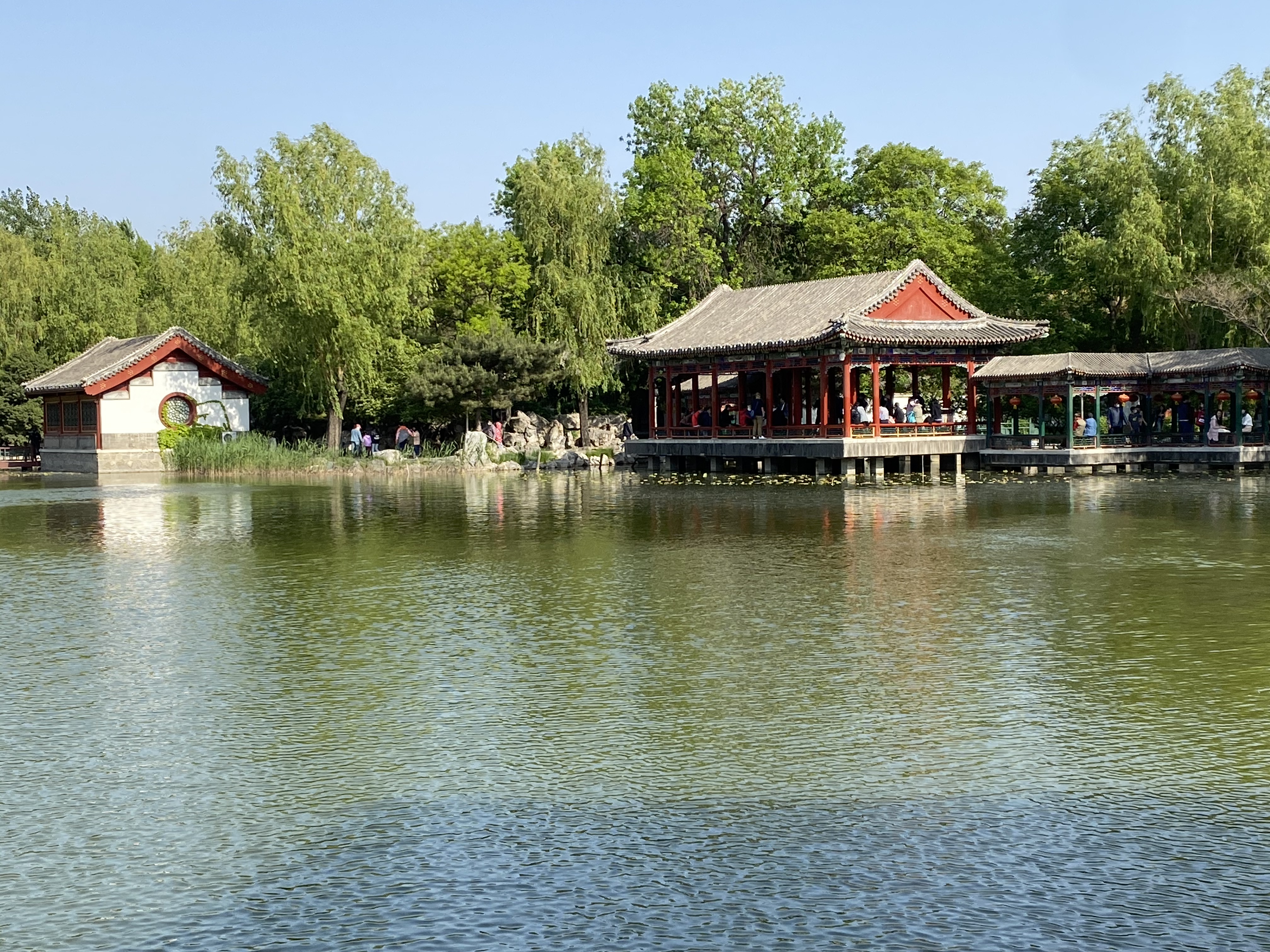 Cette pérégrination d’un pavillon à l’autre nous faisait côtoyer des moments de vie de tous les jours, c’est un parc ordinaire (quoique le prix d’entrée à 40 RMB, soit 5 euros, ne permette pas des entrées quotidiennes, sauf à ce que les locaux aient un tarif préférentiel). Et pourtant, on voyait par exemple des gens qui chantaient ou s’adonnaient au Taijiquan (Tai shi, chez nous).