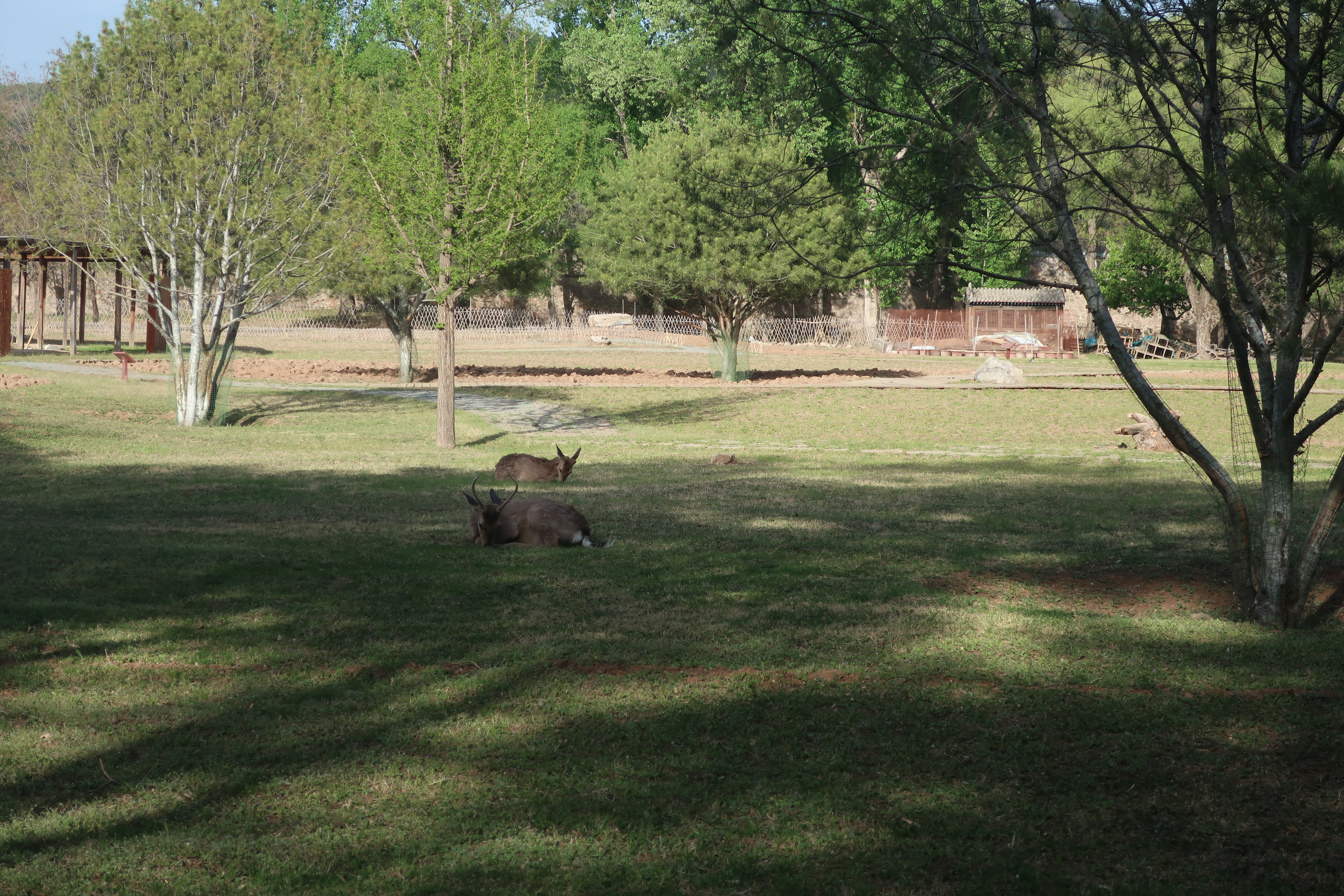 Après avoir pris le 高铁 (gao tie, TGV d’ici), nous sommes arrivés dans un hôtel situé près du site, où l’on peut dormir dans des chambres très modernes en forme de yourte, cernés par des daims. Le temps était absolument magnifique, une de ces journées magiques à la jointure de l’hiver et de l’été qui ne va pas tarder à nous envelopper dans sa chaleur étouffante.