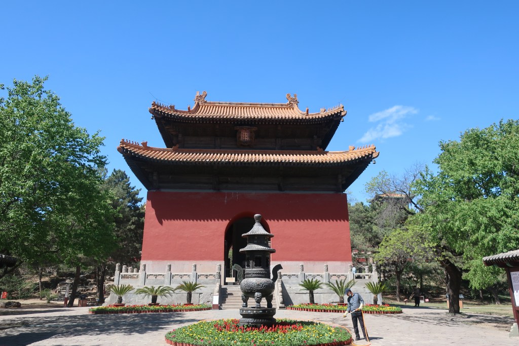 L’entrée est tout à fait comparable aux temples chinois (Han) ; les bâtiments semblent s’épanouir, plaqués sur le bleu mat et presque dense du ciel.