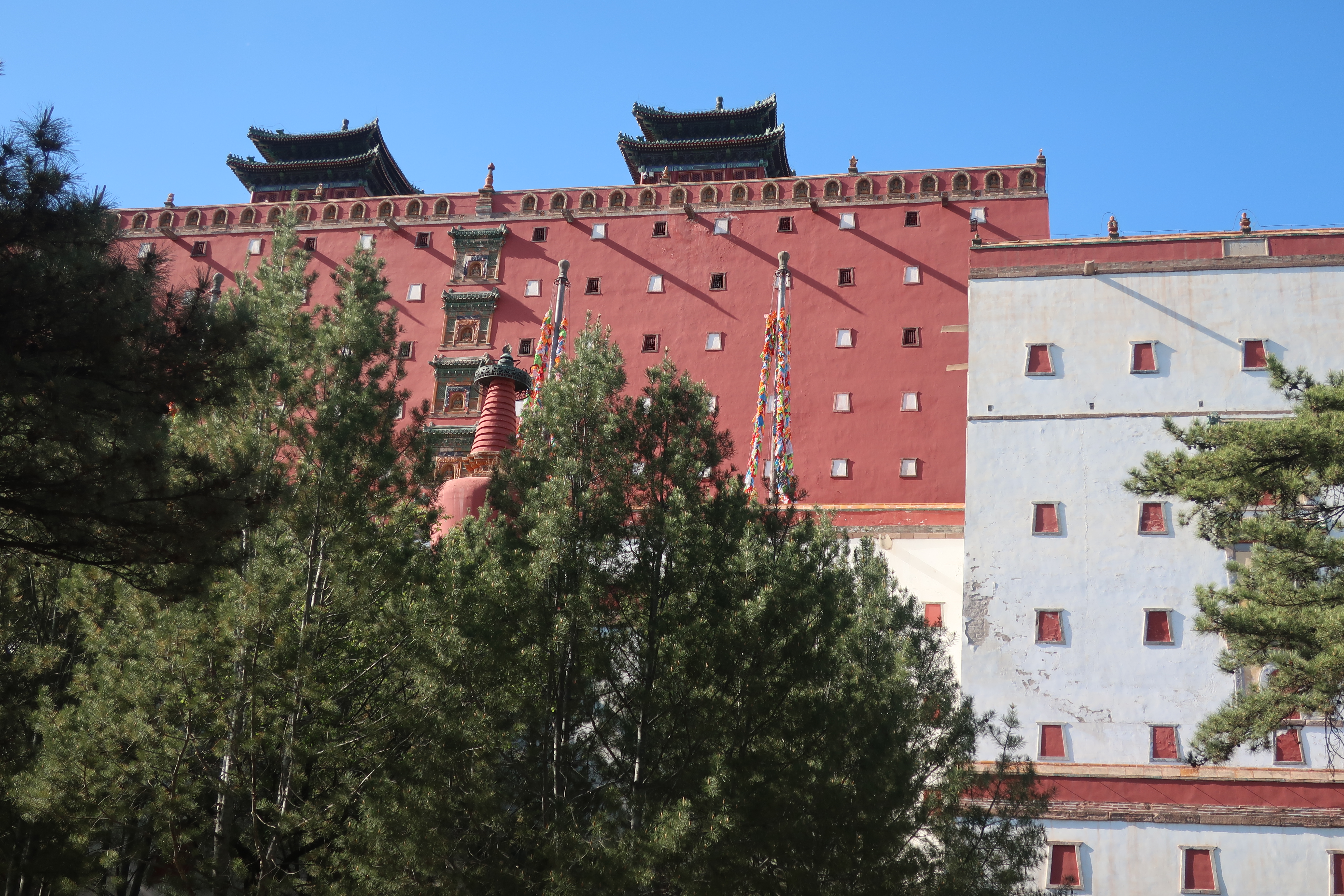 Le deuxième temple auquel nous avons rendu visite est le Temple Putuo Zhongcheng, le plus célèbre du lieu, car il intègre une réplique (à plus petite échelle) du Palais du Potala à Lhassa. Il a également été construit pour héberger les délégations tibétaines venues assister au 60e anniversaire de l’Empereur Qianlong.