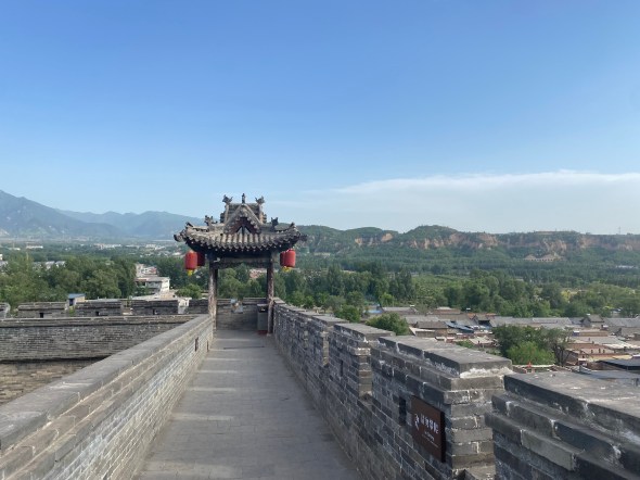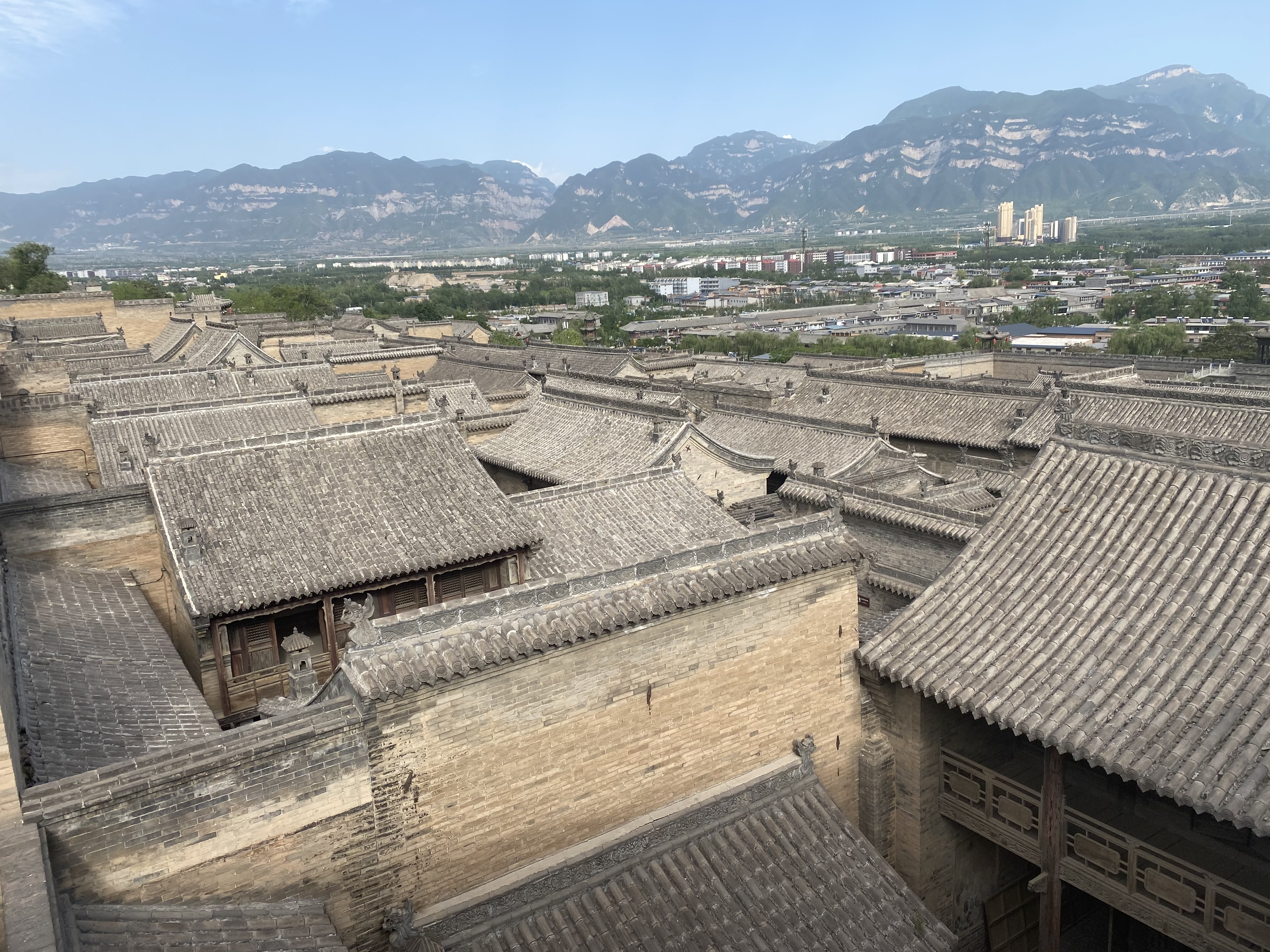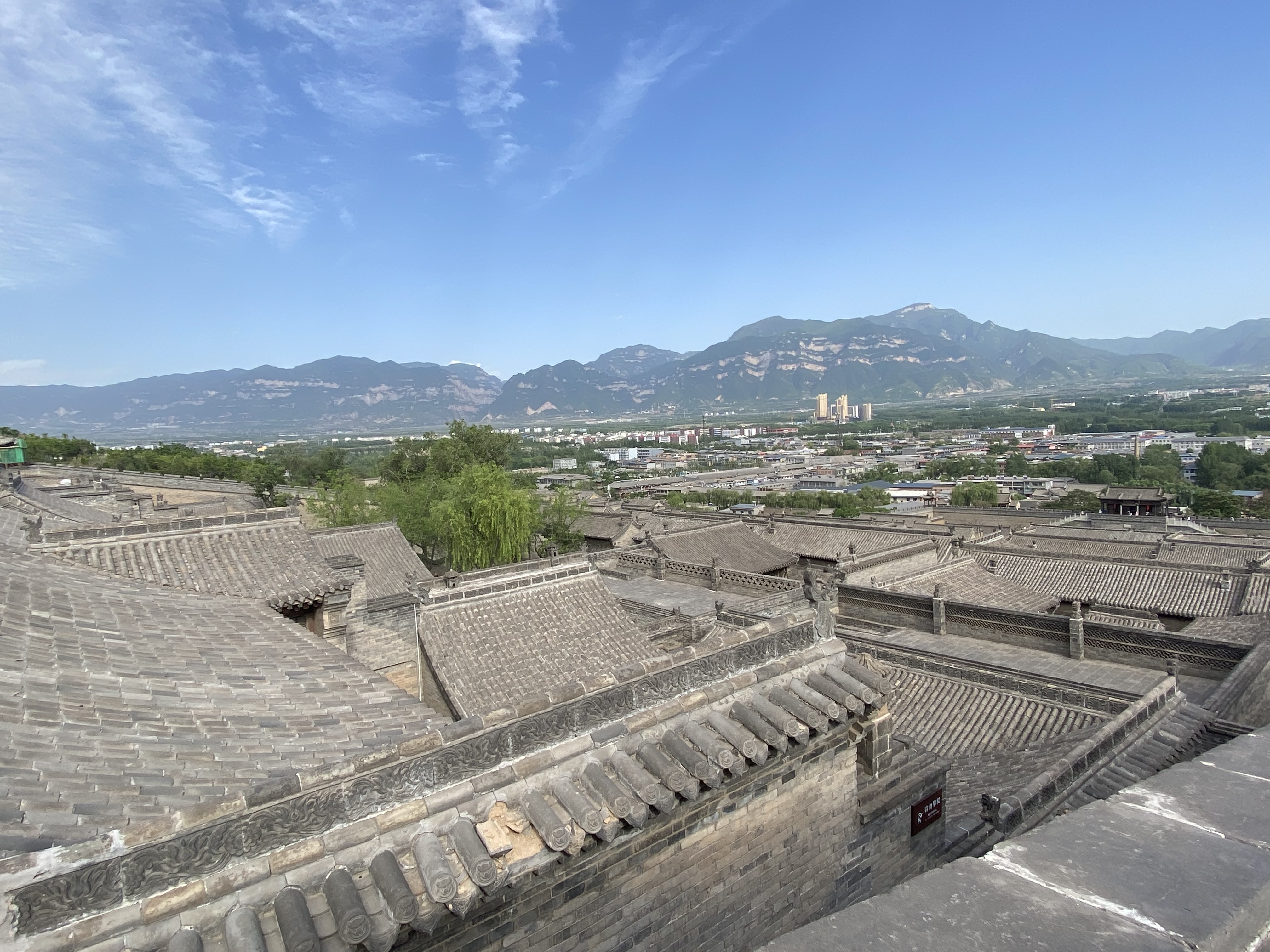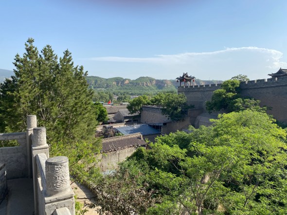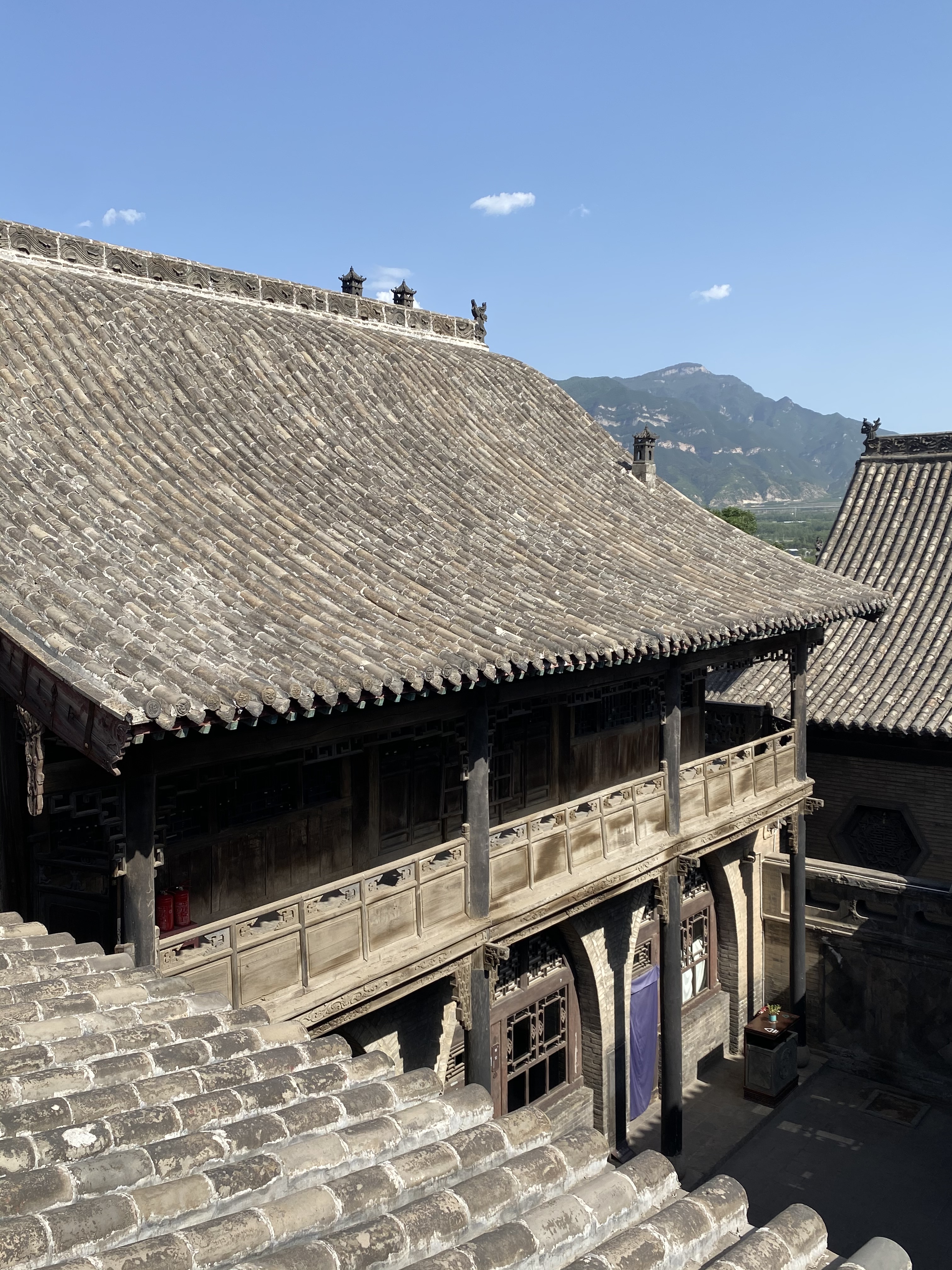 A quelques dizaines de kilomètres au sud de Pingyao se trouve une autre maison, celle du Clan Wang. Là encore un ensemble de maisons, adossées cette fois-ci à la montagne ; la muraille, que l’on peut parcourir, ouvre sur des lointains escarpés, magnifiques sous ce beau ciel bleu parcouru de nuages.