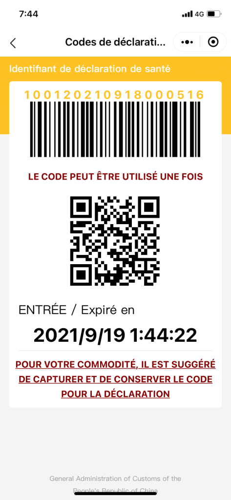 Enfin, il faut un double test PCR/sérologique négatif dans les 72 heures précédant le vol. Sûrement puisqu’il s’agissait d’un vol entièrement dédié à des étrangers, la Chine a rajouté une petite subtilité : en plus d’un test PCR de moins de 72 h, il fallait également un double test négatif de moins de 36 heures, heure pour heure, d’avant le vol. Et à réaliser dans un des trois laboratoires de Paris validés par l’Ambassade de Chine en France. Il s’agissait ensuite de télécharger tous les documents sur un site (avec des formats particuliers, sinon ce serait trop simple) et attendre d’avoir un code vert sur le site.