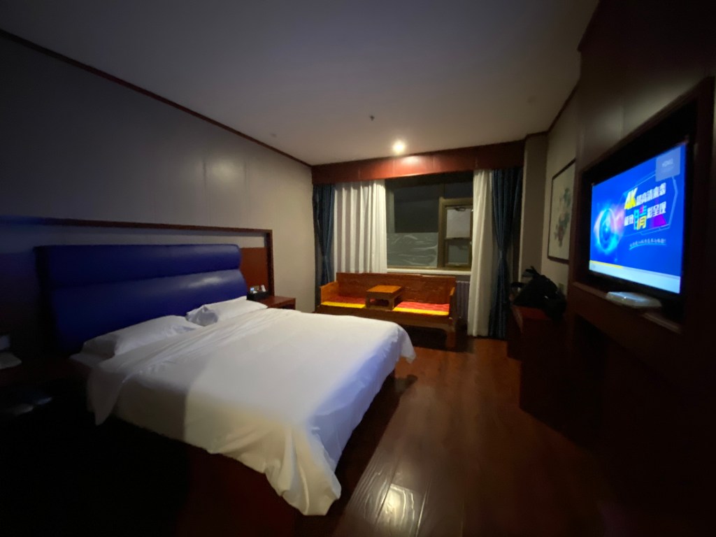 Le bus nous emmène ensuite vers un hôtel, à une heure de route, quand même. Les formalités d’enregistrement sont lentes, si lentes, je parviens à gagner ma chambre à 23 h 30, 7 h 30 après avoir atterri.