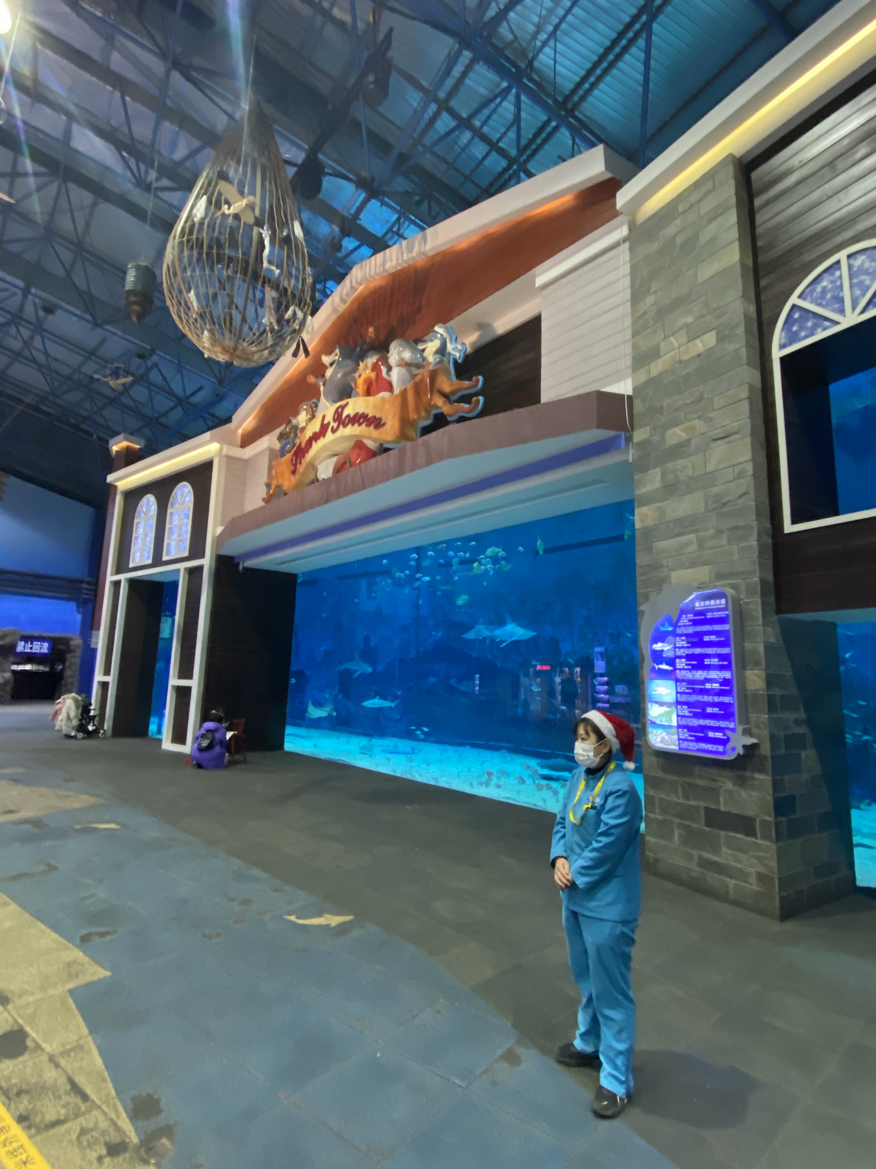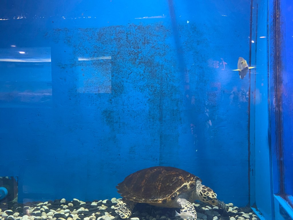Alors que j’allais vers la sortie, pour échapper à cette misère animale qui me faisait tellement mal au coeur, j’ai été happée par l’annonce d’un aquarium. Là aussi, mes souvenirs de celui de Kuala Lumpur par exemple, où j’ai vu comment les équipes prenaient soin des poissons, m’a induite en erreur.