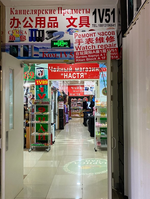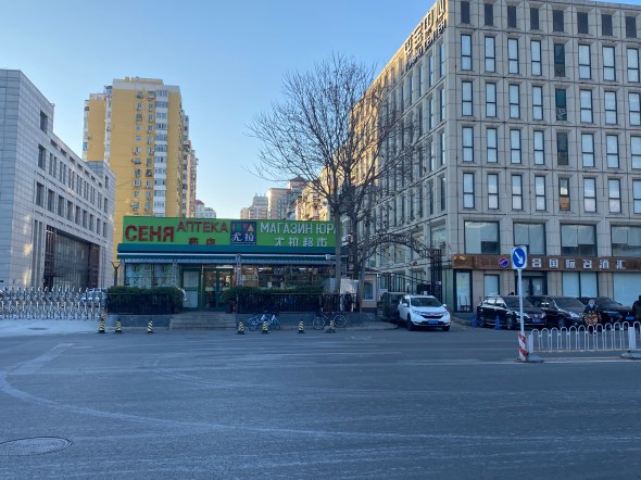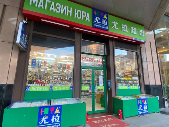 Au rez-de-chaussée, une épicerie qui vend des denrées russes ; les vendeurs sont chinois (je n’ai pas vu de vendeur russe ici).