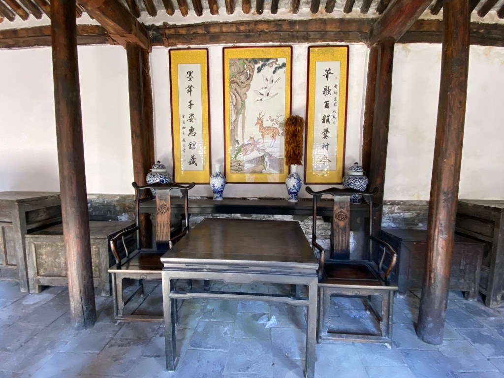 Nous visitons la plus belle maison du village, 大五间 (Dawujian, littéralement, la maison à cinq pièces). Elle me fait beaucoup penser à ce que j’ai vu à Pingyao, avec son ossature de bois ouvragé.