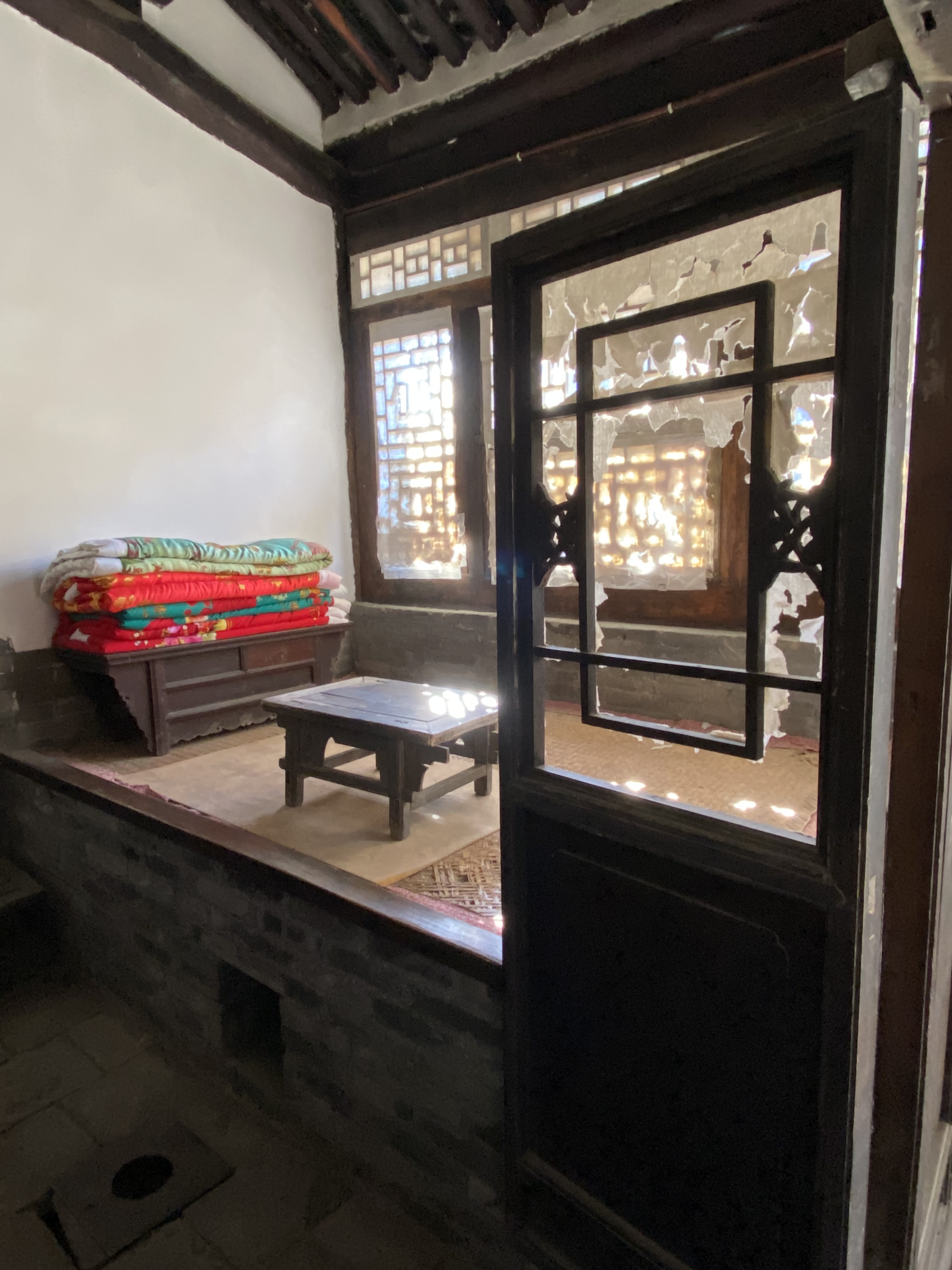 Nous visitons la plus belle maison du village, 大五间 (Dawujian, littéralement, la maison à cinq pièces). Elle me fait beaucoup penser à ce que j’ai vu à Pingyao, avec son ossature de bois ouvragé.