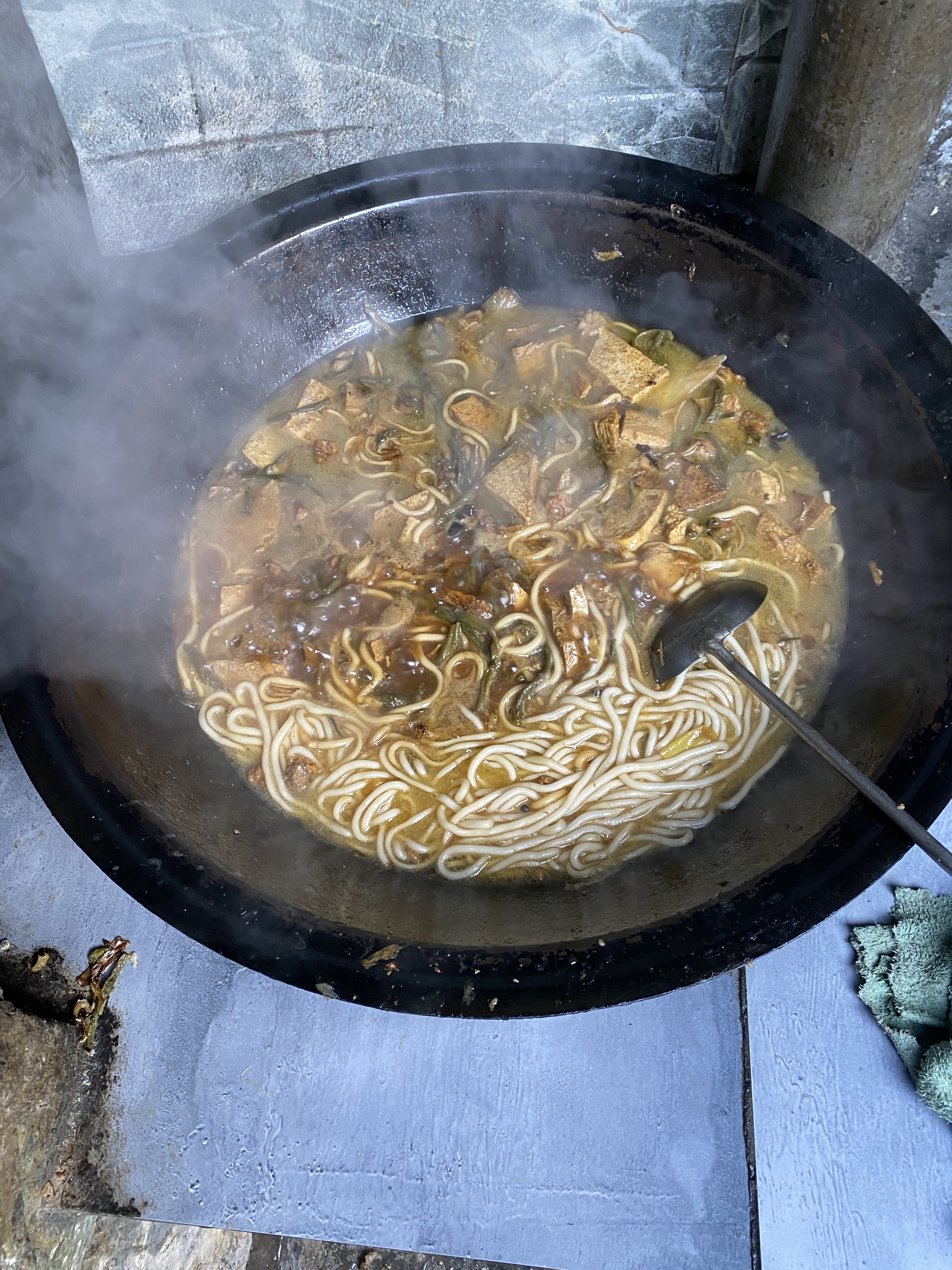 Nous avons fait un repas de roi ici, simple et très goûteux, poisson, nouilles au chou et au tofu, brochettes d’agneau et pain à l’huile et aux herbes.
