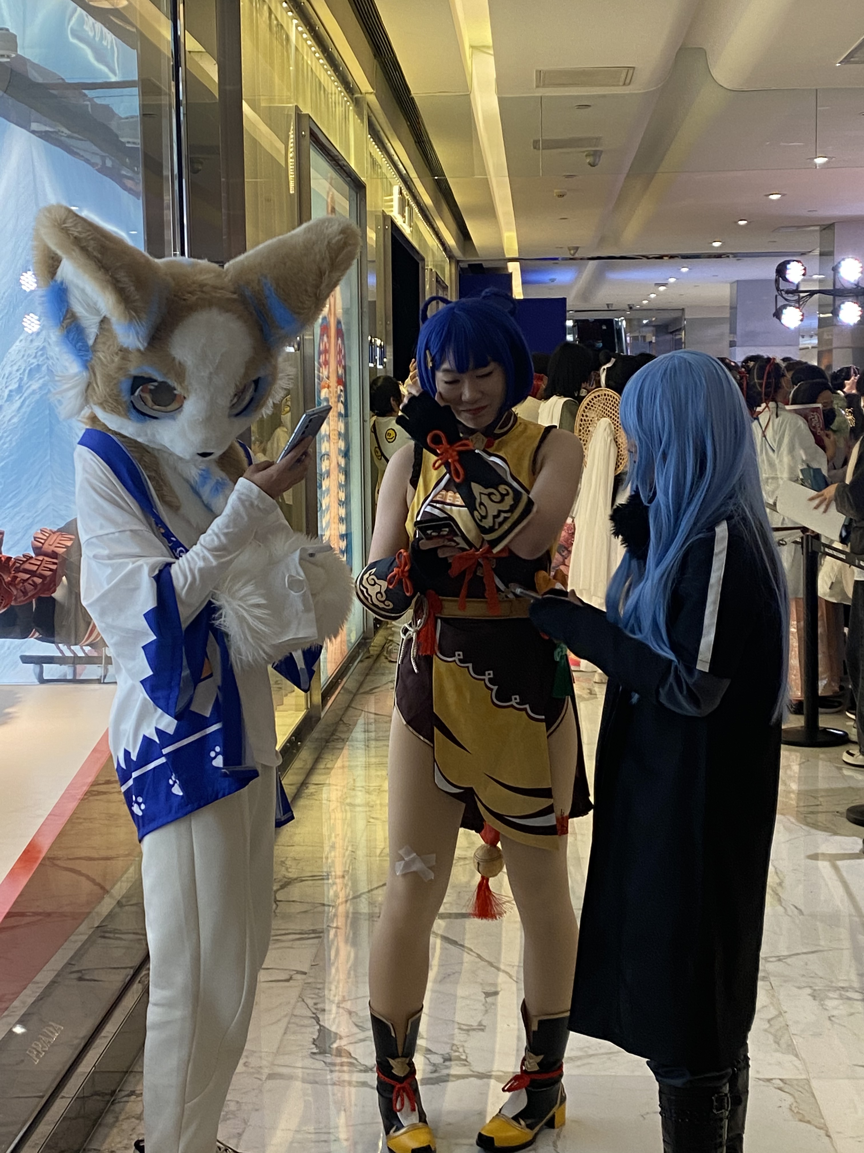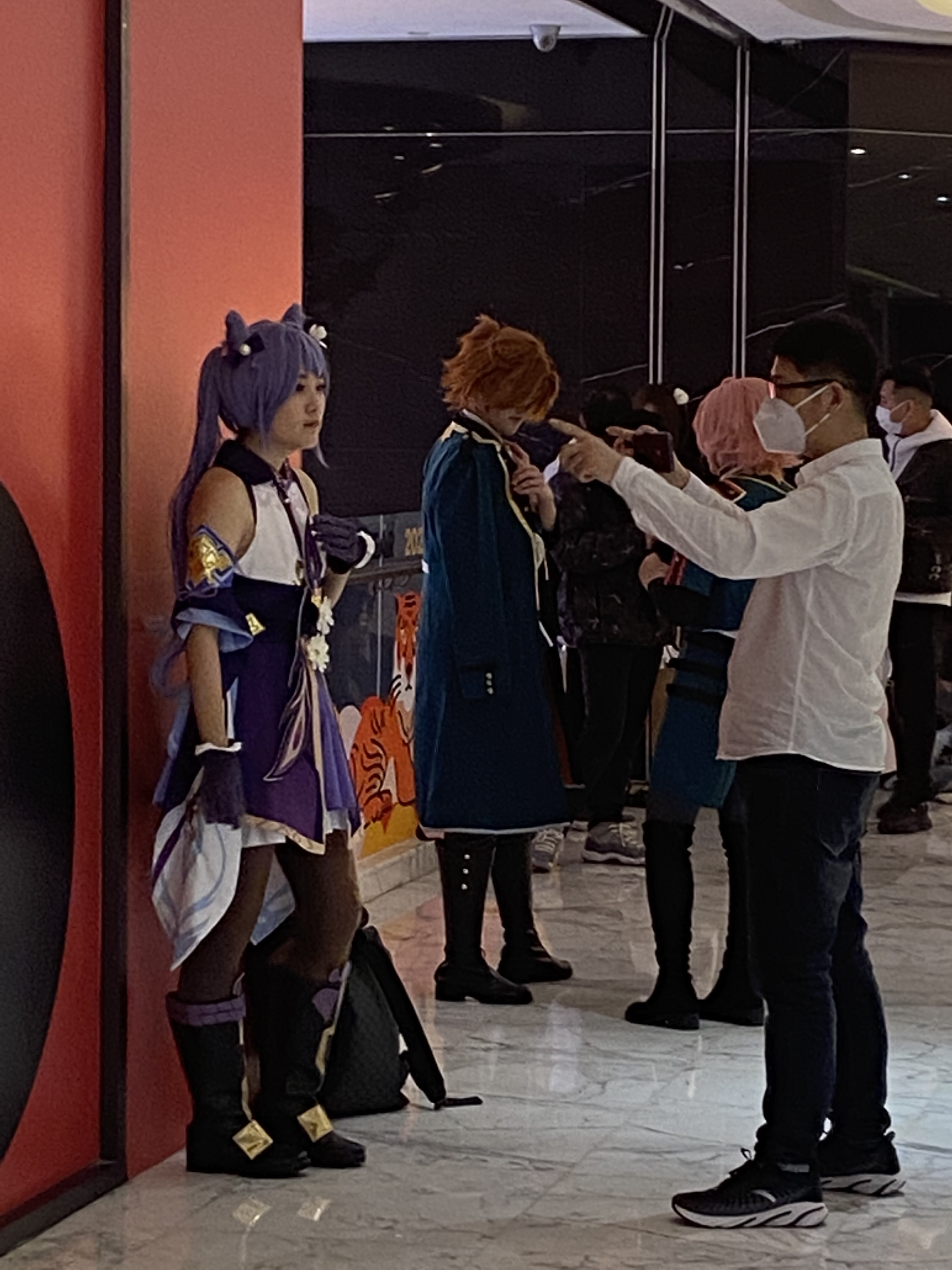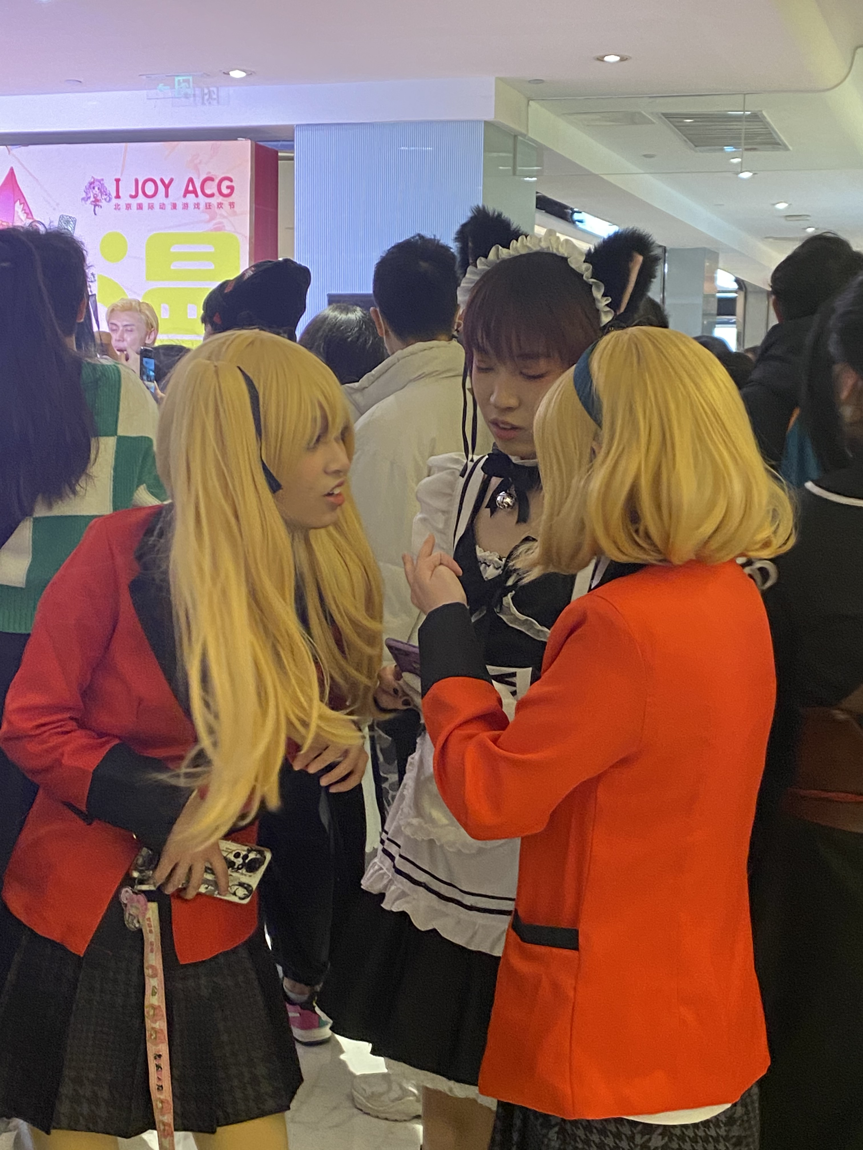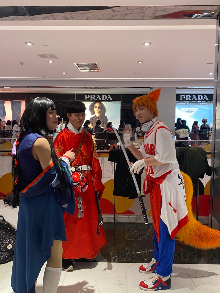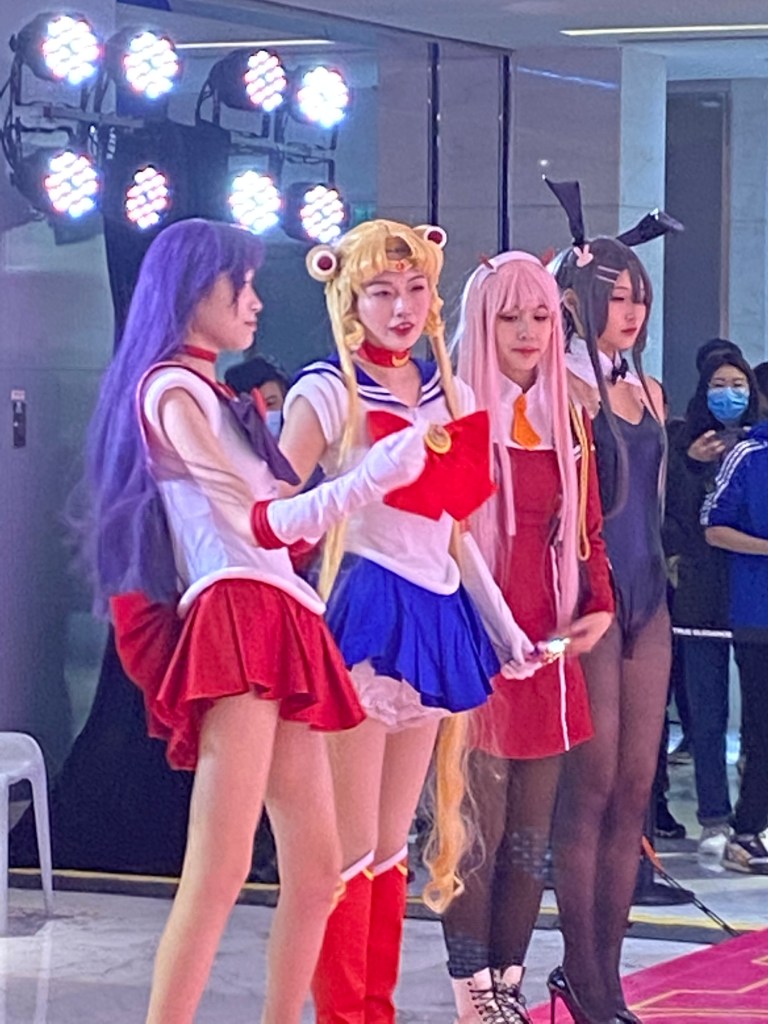 Ce matin, j’avais décidé d’aller déjeuner dans un centre commercial proche de chez moi, le « In88 » (n’oubliez pas que le chiffre 8 est synonyme de chance en Chine) avec une amie. Chemin faisant, nous avons croisé une manifestation assez étonnante, des dizaines de jeunes Chinois, pour la plupart déguisés, faisant la queue pour accéder à un podium.