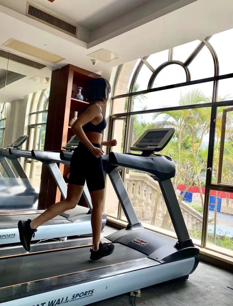 Peng est une adepte du fitness et pour occuper son esprit pendant la quarantaine, elle utilise le club de sport de l’hôtel pour tourner des vidéos d’exercices sportifs qu’elle poste sur WeChat.