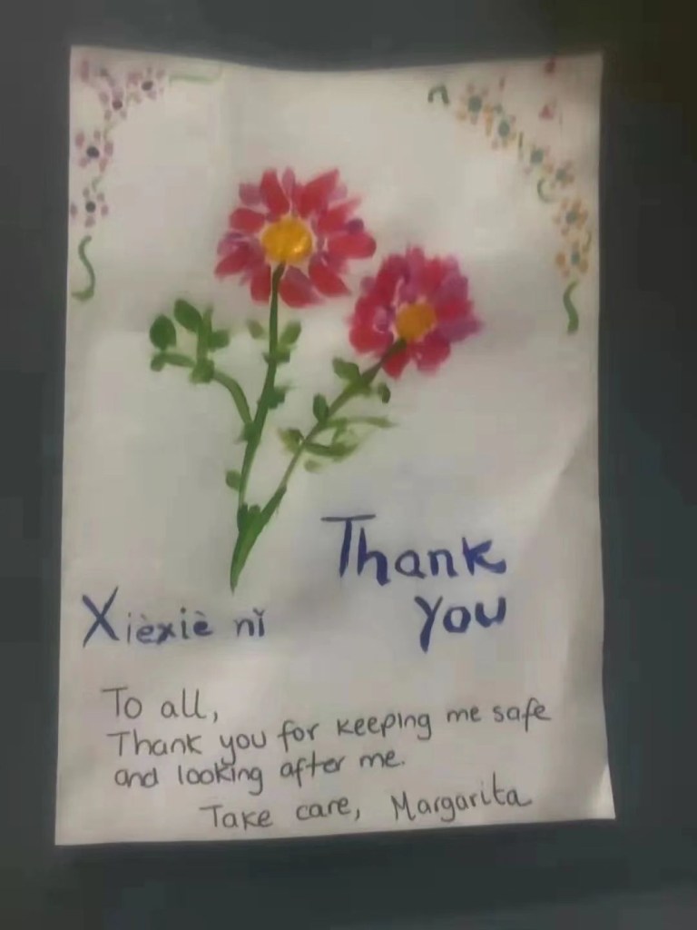 En dépit de ces cas difficiles, Peng et Lin ont aussi de belles et chaleureuses expériences dans l’hôtel ; bien des résidents ont été très reconnaissants pour leur service et leur ont écrit des cartes de remerciement (qui ont été immédiatement plongées dans une solution désinfectante) et ont posé pour des selfies au moment de leur départ.