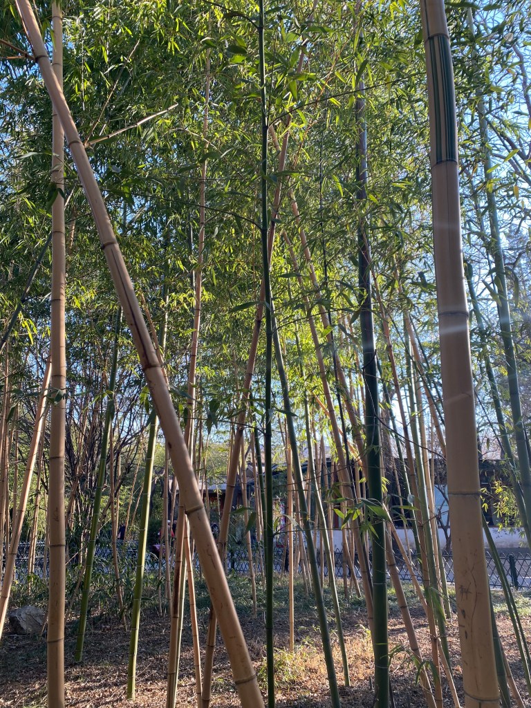 C’est un très ancien endroit que ce jardin, situé dans le nord ouest de Pékin, son histoire remonte au XIIIe siècle, bien que tout ait été reconstruit entre 2010 et 2012 en forme de restauration. En cette période encore en transition entre hiver et printemps (nous sommes le 13 mars et l’on annonce possiblement de la neige vers le 17 mars…), même si quelques fleurs audacieuses ont décidé de percer çà et là, les bambous restent une valeur sûre dans leur résistance à l’hiver.