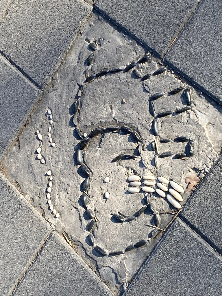 Pour agrémenter le chemin, dans tout ce béton lisse et bête, quelques artistes ont incrusté des motifs curieux et bien sympathiques.