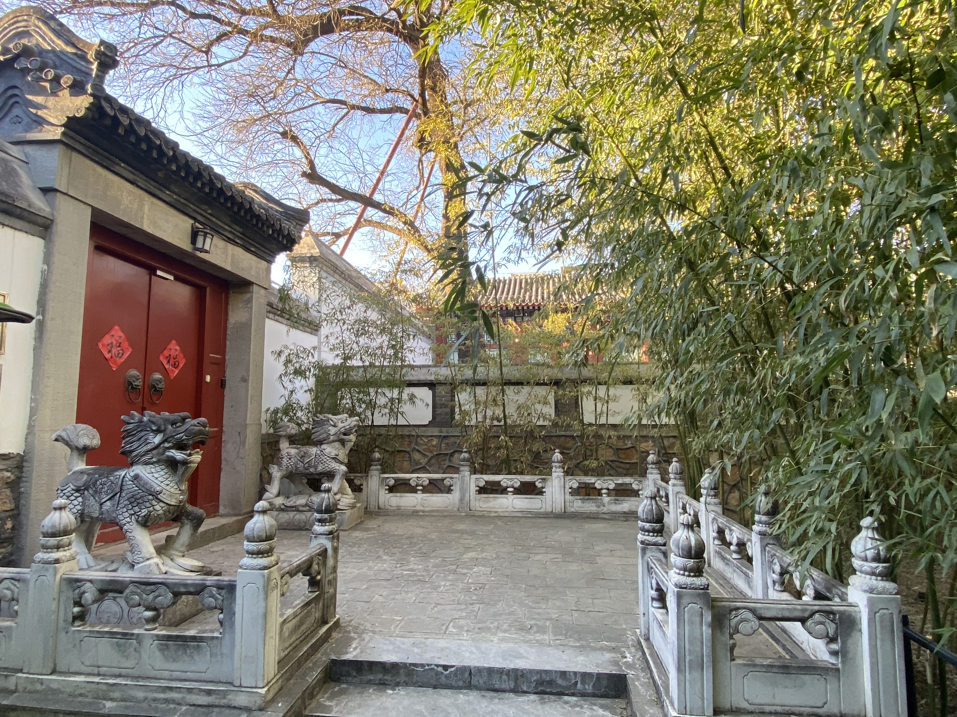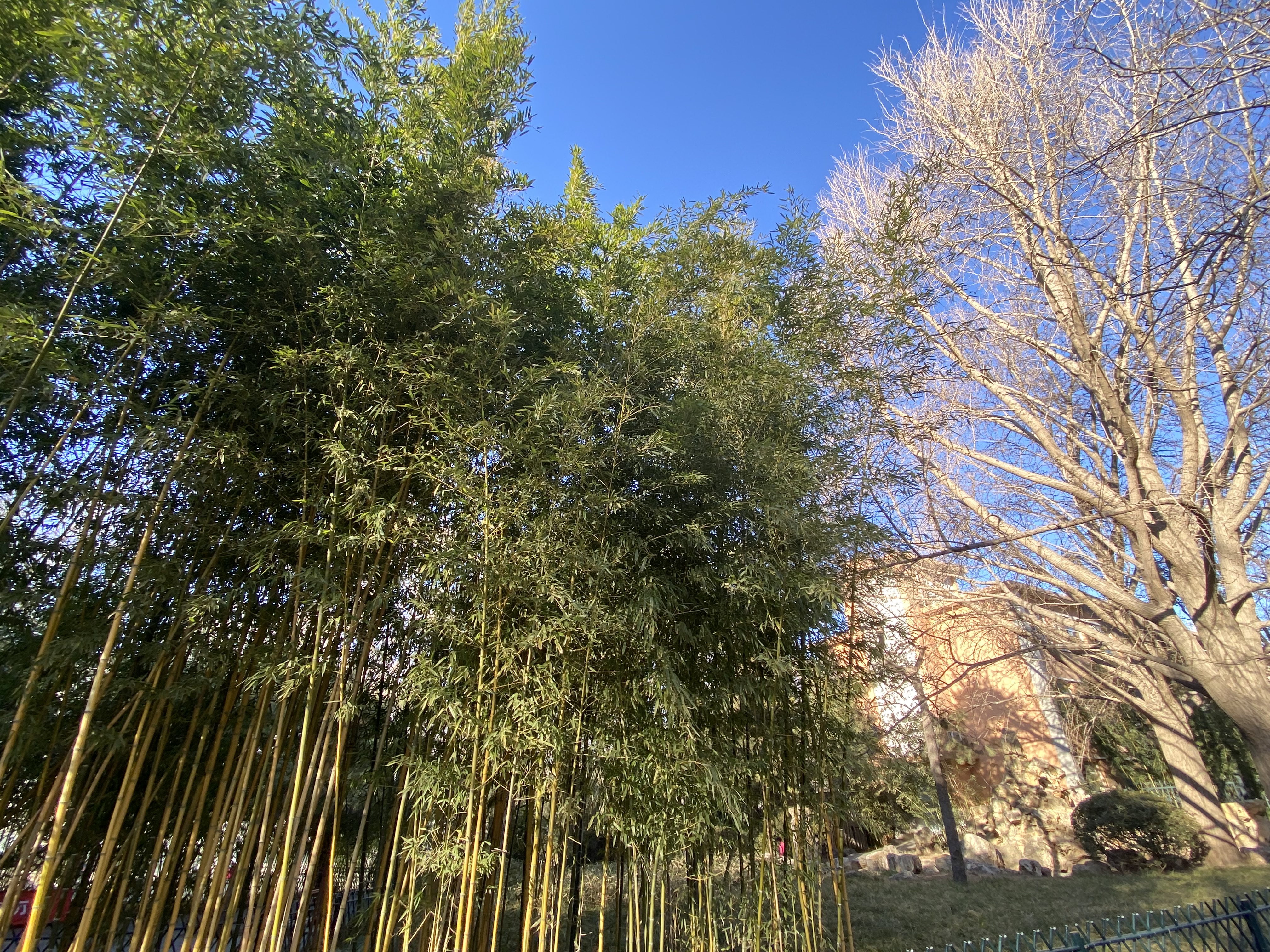 C’est un très ancien endroit que ce jardin, situé dans le nord ouest de Pékin, son histoire remonte au XIIIe siècle, bien que tout ait été reconstruit entre 2010 et 2012 en forme de restauration. En cette période encore en transition entre hiver et printemps (nous sommes le 13 mars et l’on annonce possiblement de la neige vers le 17 mars…), même si quelques fleurs audacieuses ont décidé de percer çà et là, les bambous restent une valeur sûre dans leur résistance à l’hiver.
