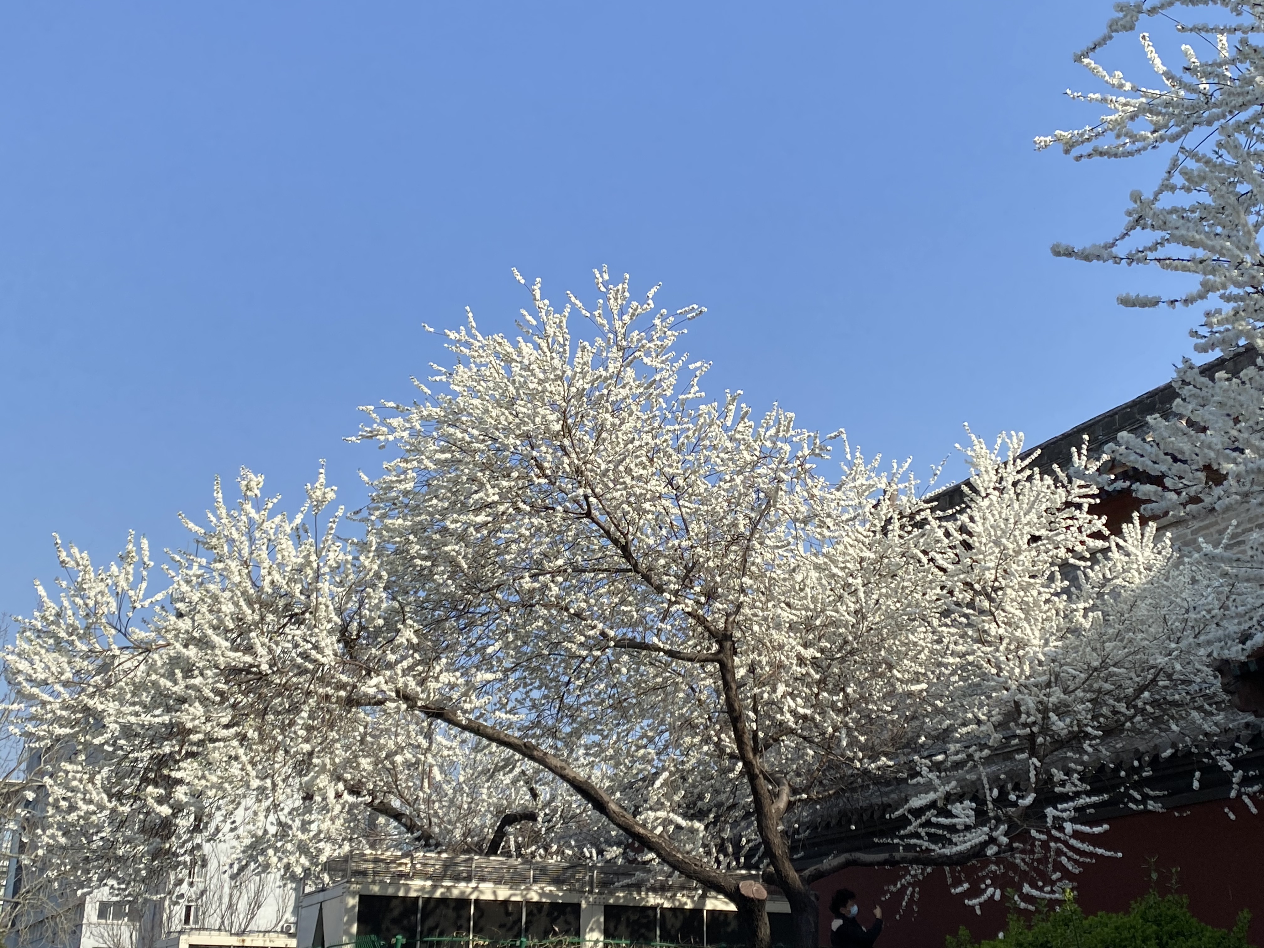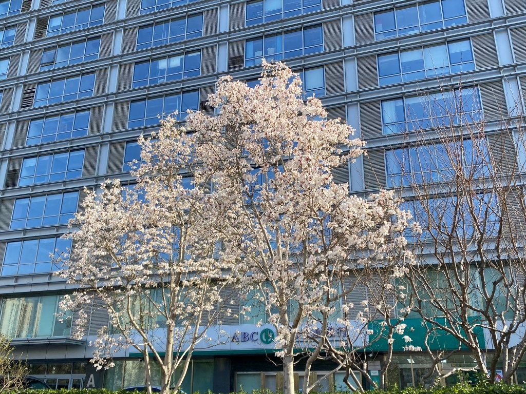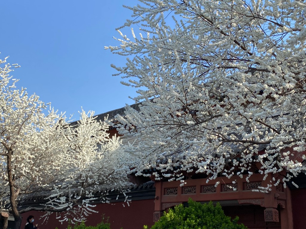 Deux semaines auparavant, nous étions ensevelis par une tempête de neige, mais ici tout va très vite. Les flocons accrochés aux branches ont fait place à des fleurs qui leur ressemblent, en une explosion blanche. Voici par exemple quelques arbres croisés près du Temple des Lamas (雍和宫寺).