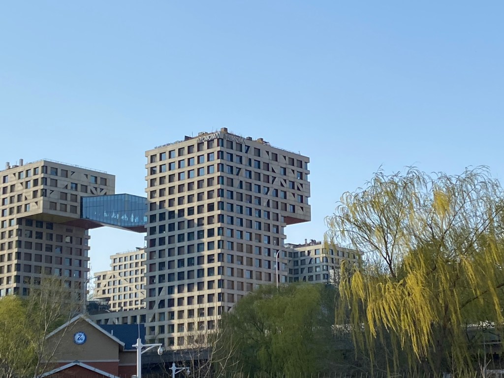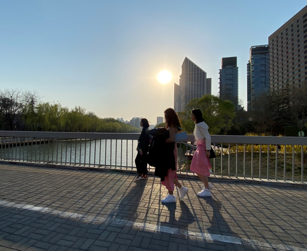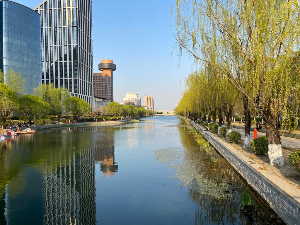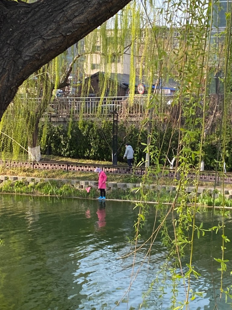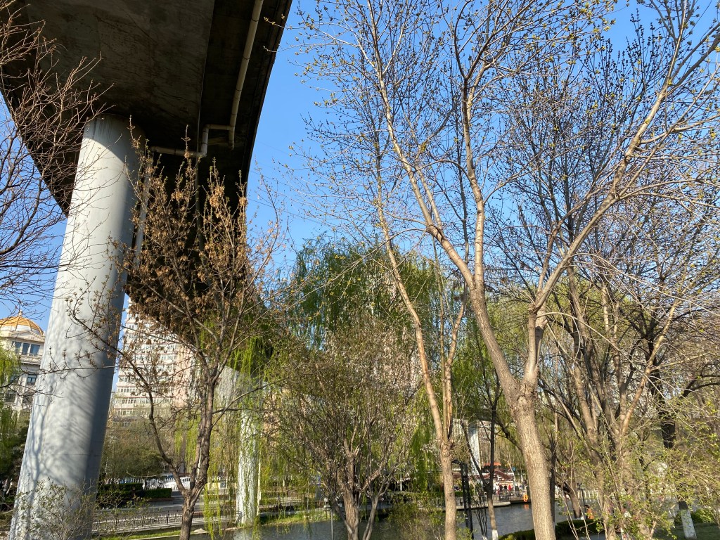 Mon but de promenade était de longer une rivière urbaine, Liangmahe (je traduirai bien par la rivière du cheval clair, mais je ne suis pas sûre). Elle traverse la capitale d’ouest en est, près du deuxième périphérique, rejoignant les beaux quartiers de Chaoyang qui abritent les Ambassades (dont celle de France).