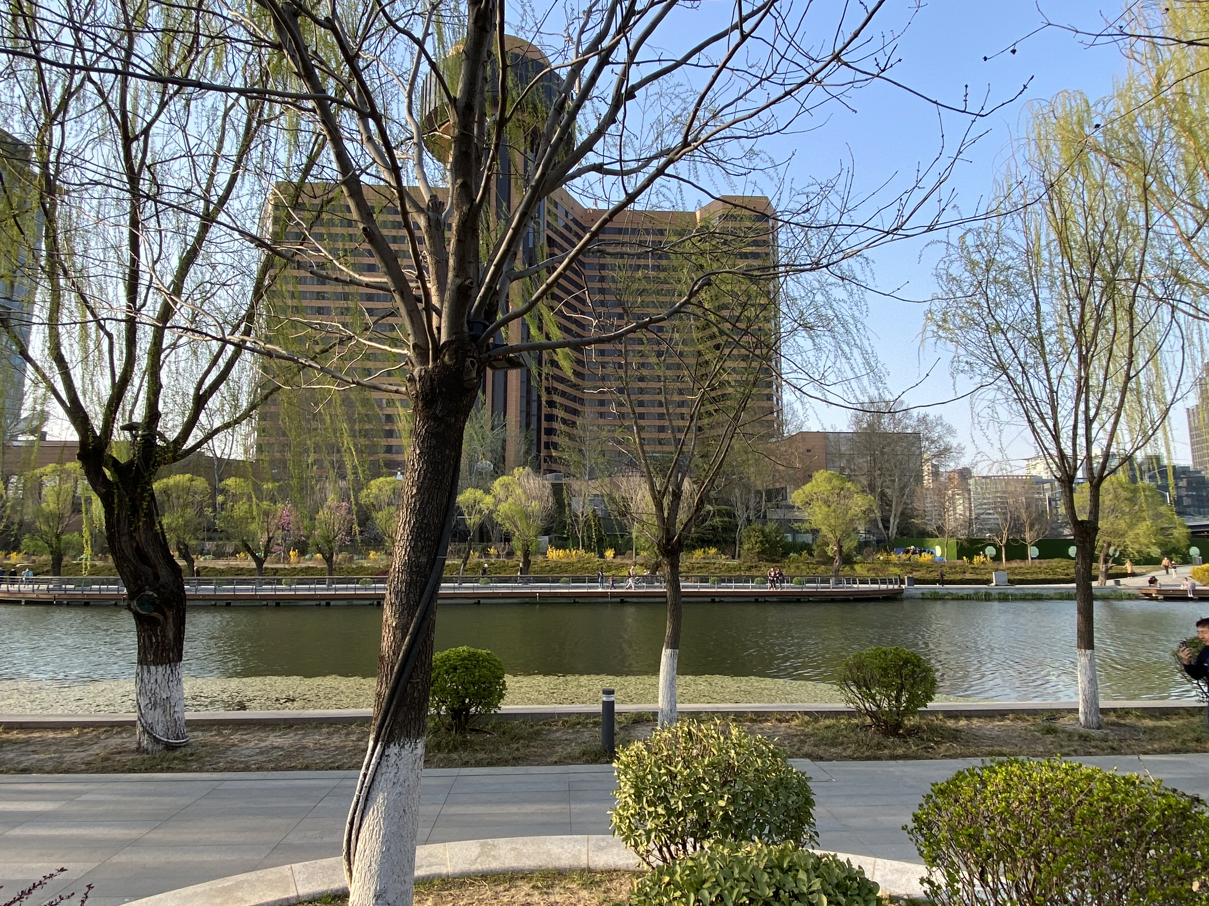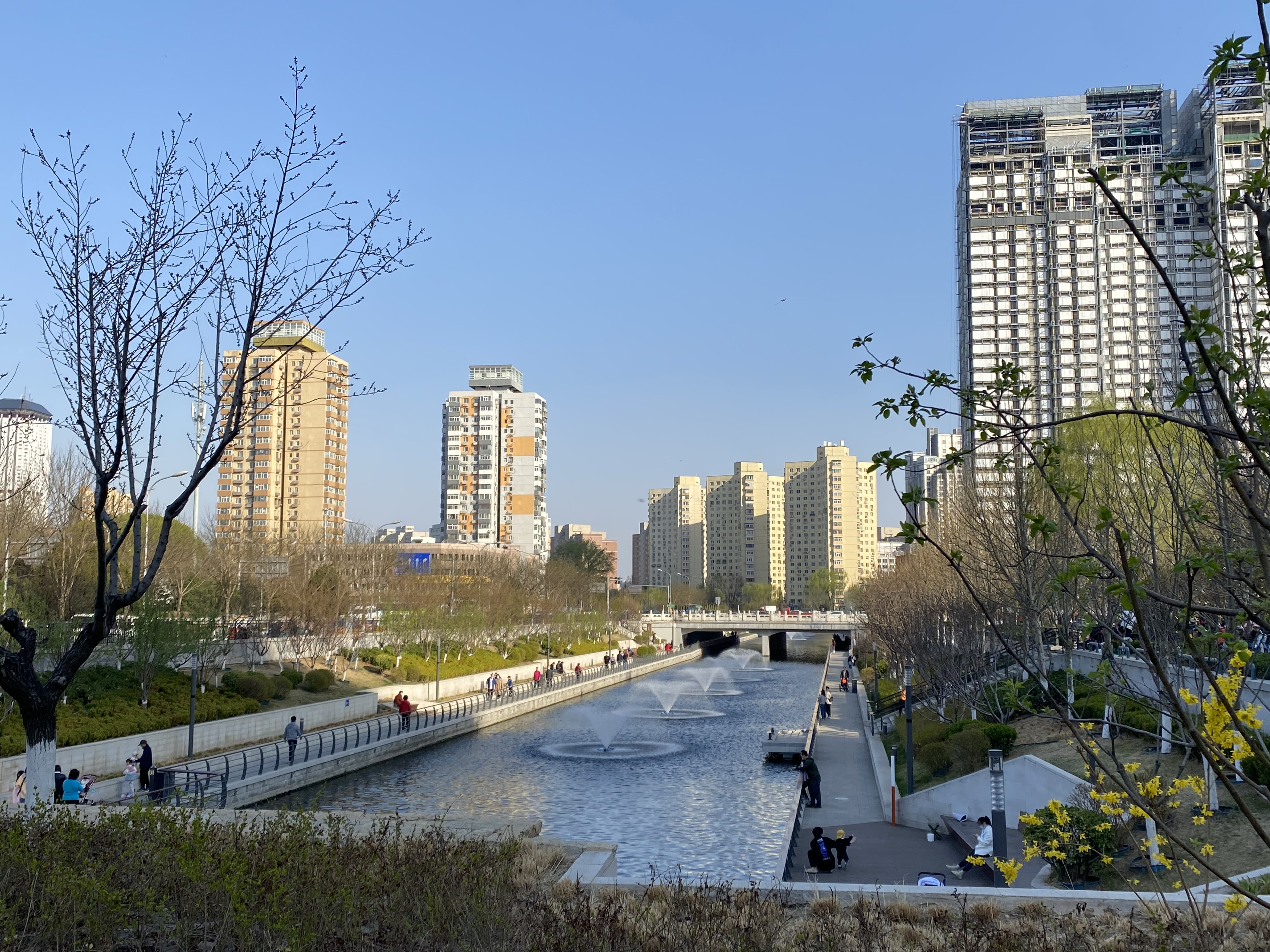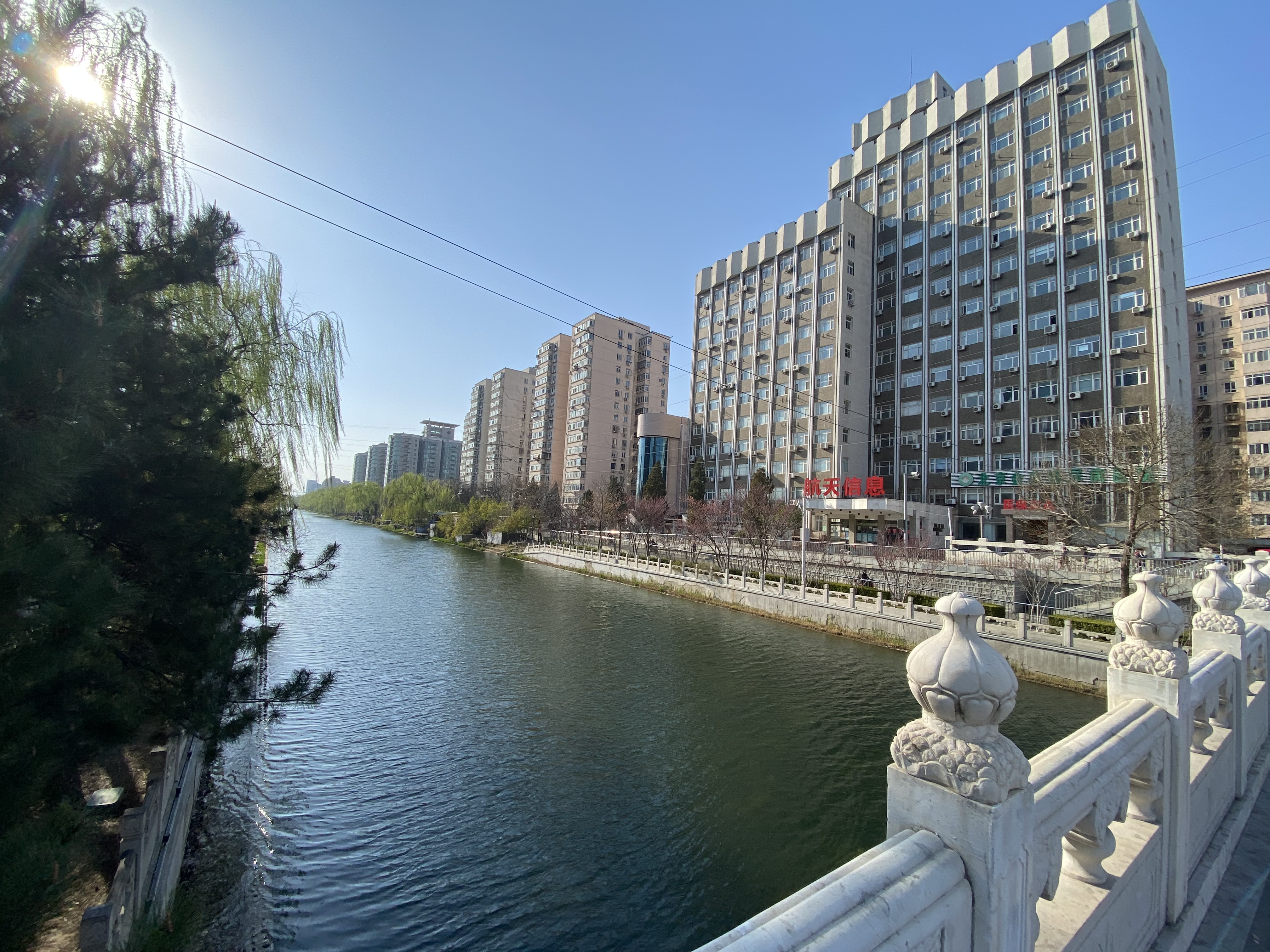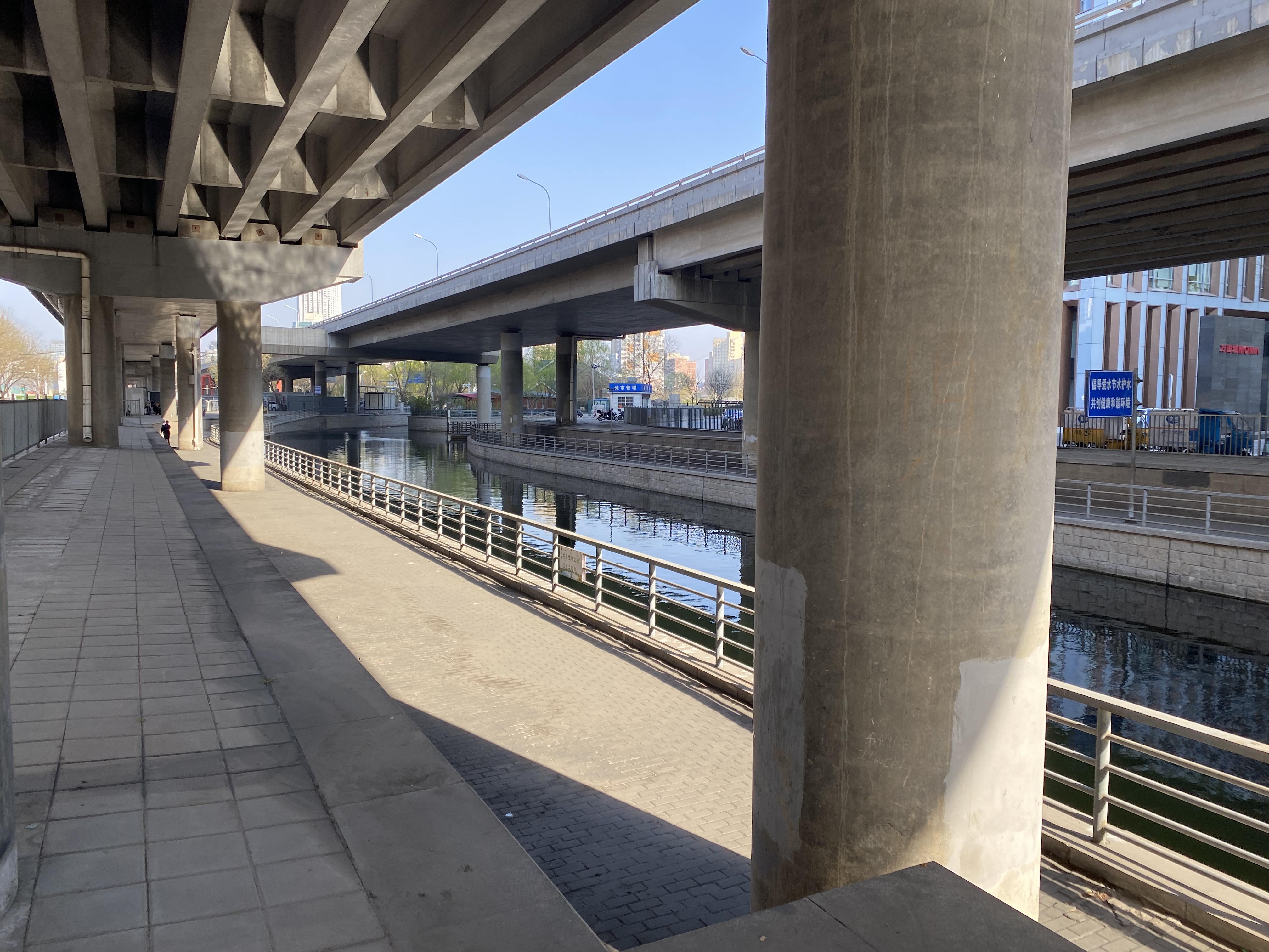 Mon but de promenade était de longer une rivière urbaine, Liangmahe (je traduirai bien par la rivière du cheval clair, mais je ne suis pas sûre). Elle traverse la capitale d’ouest en est, près du deuxième périphérique, rejoignant les beaux quartiers de Chaoyang qui abritent les Ambassades (dont celle de France).