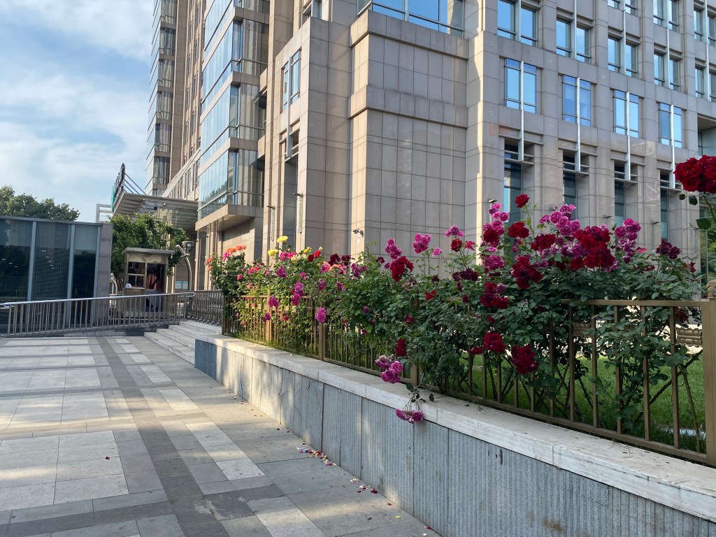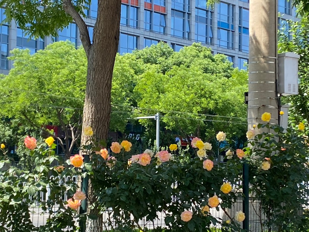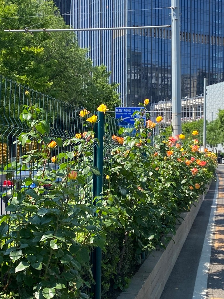 L’an dernier, j’avais déjà assisté à ce phénomène, dont je veux vous parler, confirmé cette année. Au début du mois de mai, tout d’un coup (突然 comme diraient les Chinois), des milliers de pieds de roses incrustent leurs floraisons le long des rues, des avenues, des six voies ou plus. S’invitant avec toute leur beauté dans cet univers urbain jusqu’à l’hostilité (franchement, si vous étiez une fleur, vous aimeriez être en bordure d’une six voies ? Moi je préfèrerais être dans un jardin, mais je ne suis pas une fleur, nous n’avons peut-être pas les mêmes façons de penser).