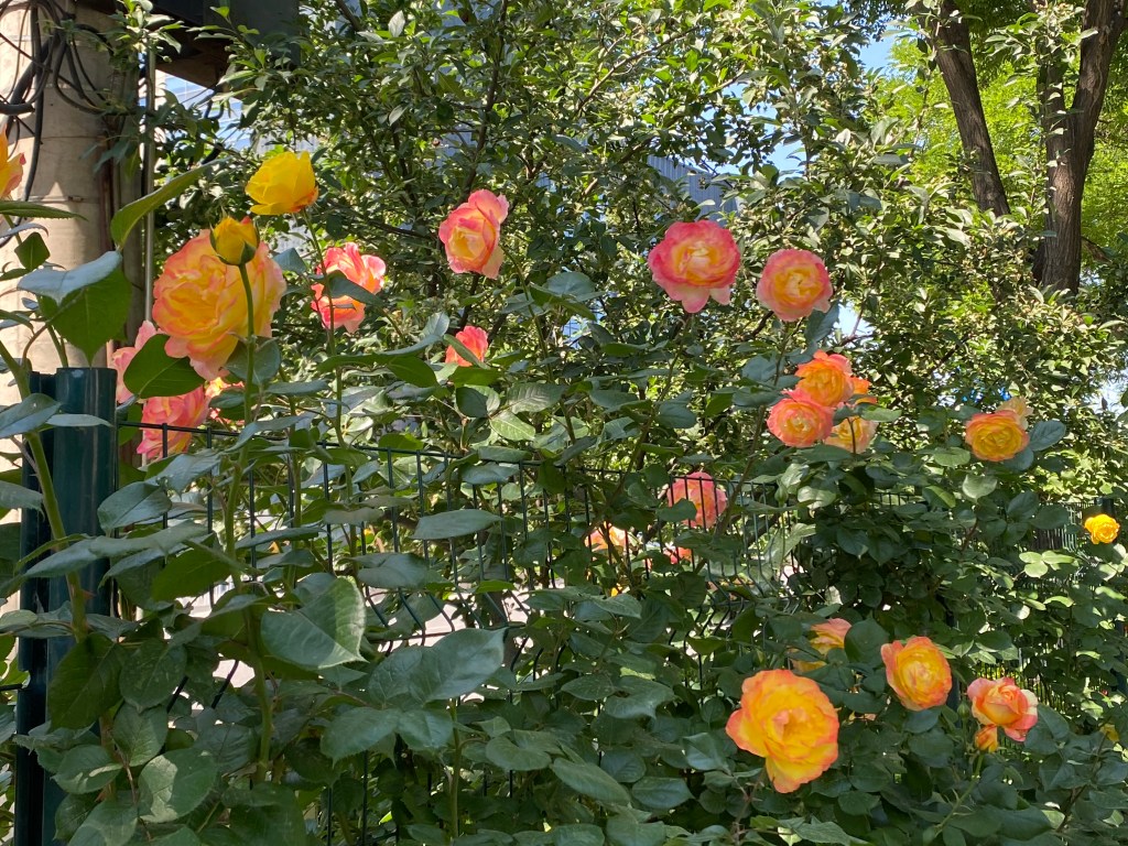 Et nous pouvons leur rendre grâce, car c’est exceptionnel, toutes ces fleurs parfumées, en couleurs variées ; elles accompagnent mes trajets en vélo de toute leur beauté et leur odeur (j’avoue ôter le masque de temps à autre pour les humer).