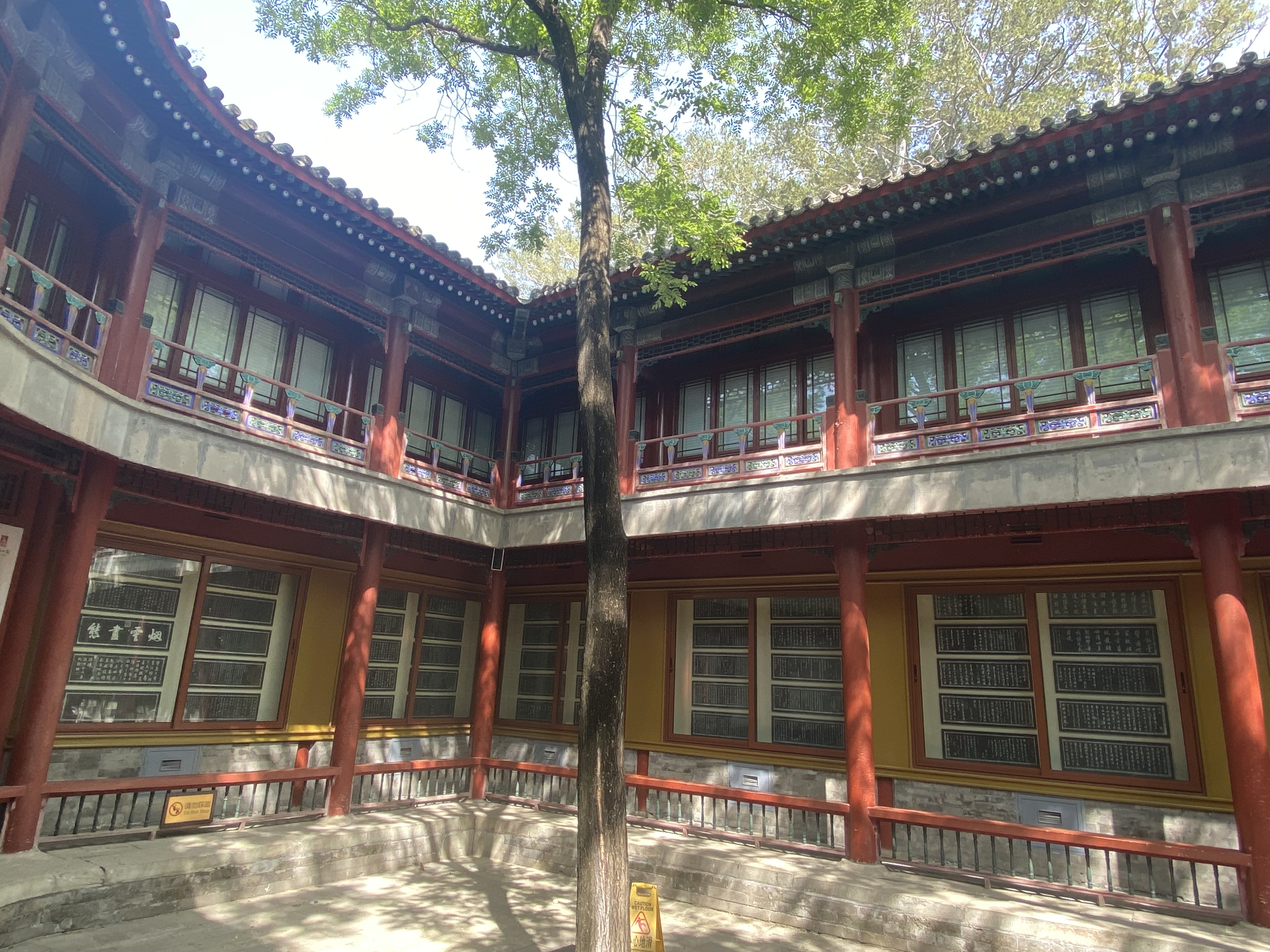 Ce lac est une merveille. Au-delà de la beauté de toute cette étendue d’eau que la nature rend encore plus magnifique, il regorge de monuments sur ses rives. Je vais vous montrer de nouveaux lieux que je connaissais pas. Tout d’abord, ce lieu, fermé lors de ma précédente visite, une ancienne librairie, semble t-il (si j’ai bien traduit). Havre de paix, avec ses deux arbres impressionnants dressés vers le ciel. Quelques sièges improvisés sur les balustrades et vous êtes le roi (la reine) du monde pour un moment méditatif tout à vous.