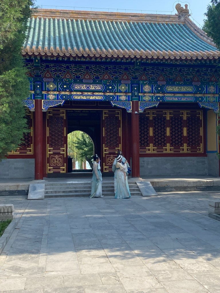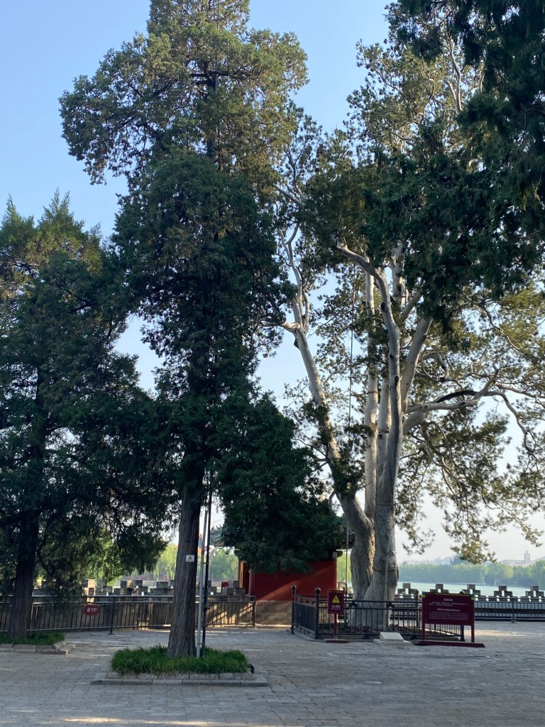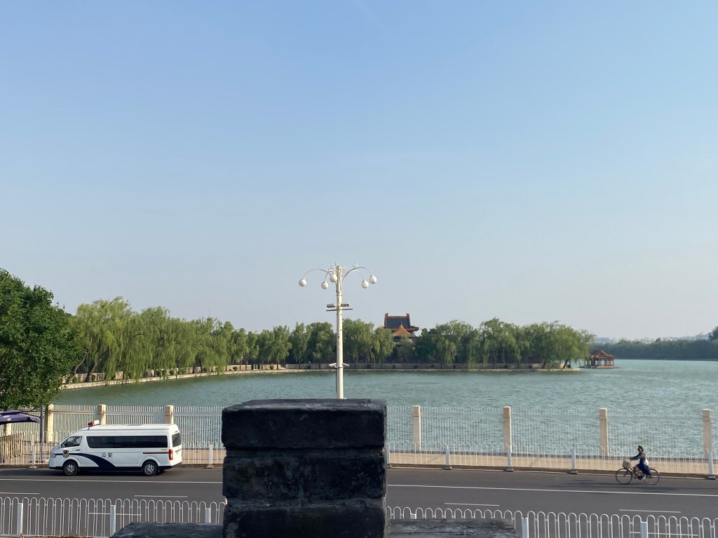 Avant de repartir en vélo vers chez moi, j’ai découvert un petit endroit presque privé (il faut payer en liquide, une première ici). Pour un yuan (soit 14 centimes d’euro), vous accédez à une terrasse au sud du lac, qui vous offre des vues incroyables sur le lac du centre (中海), ce lac privatisé, car longeant les quartiers du gouvernement.