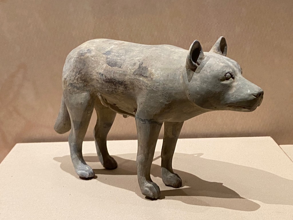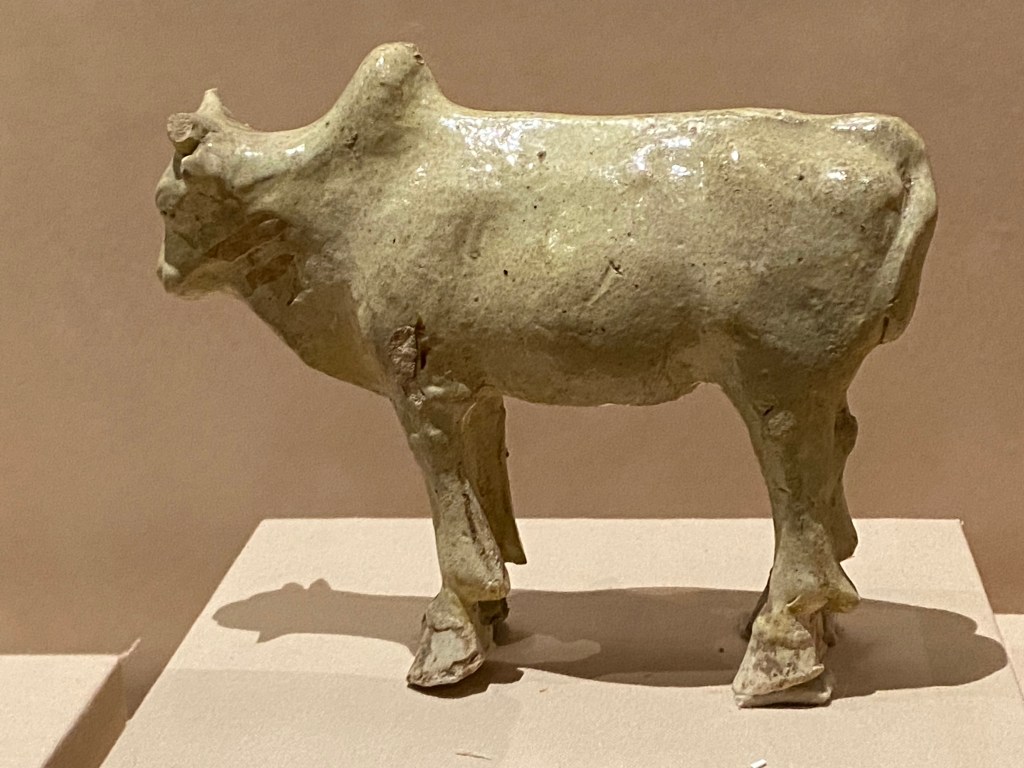 Vient ensuite la section consacrée aux animaux (ami vegan, passe ce paragraphe, qui peut te heurter…). Dans la Chine ancienne existaient six espèces d’animaux domestiques, destinées aux travaux des champs, mais aussi à la nourriture, les vaches et boeufs, les moutons, les volailles, les cochons, les chevaux (plutôt utilisés pour le transport) et les chiens. Boeufs, cochons et moutons étaient également utilisés lors de sacrifices. Je ponctuerai mes propos érudits (de fraîche date) de ces très beaux objets qui illustraient l’exposition.