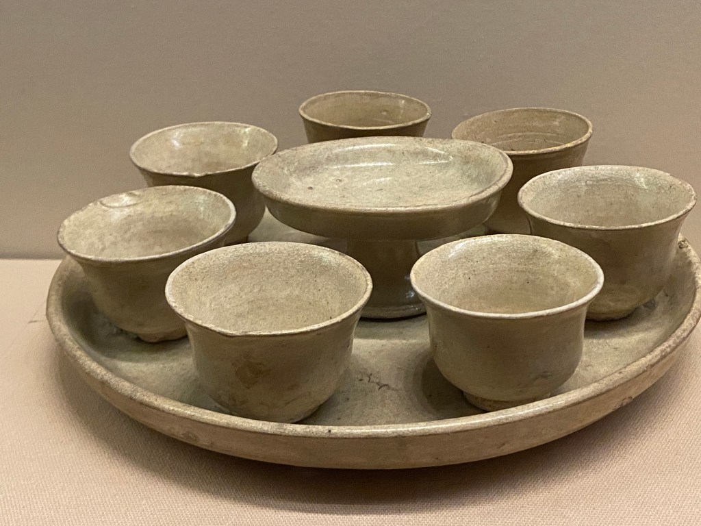 La section suivante de l’exposition est consacrée aux différents ustensiles utilisés pour conserver, cuire, servir la nourriture, voire les boissons. Elle commence d’ailleurs par ces dernières, le vin de riz et le thé, qui sont des boissons ancestrales. Là également, elles sont conçues en référence à la santé : « le vin est audacieux comme un héros, le thé est solitaire comme un ermite », dit la sagesse populaire, le premier échauffe, le second refroidit, pour suivre la ligne développée plus haut.