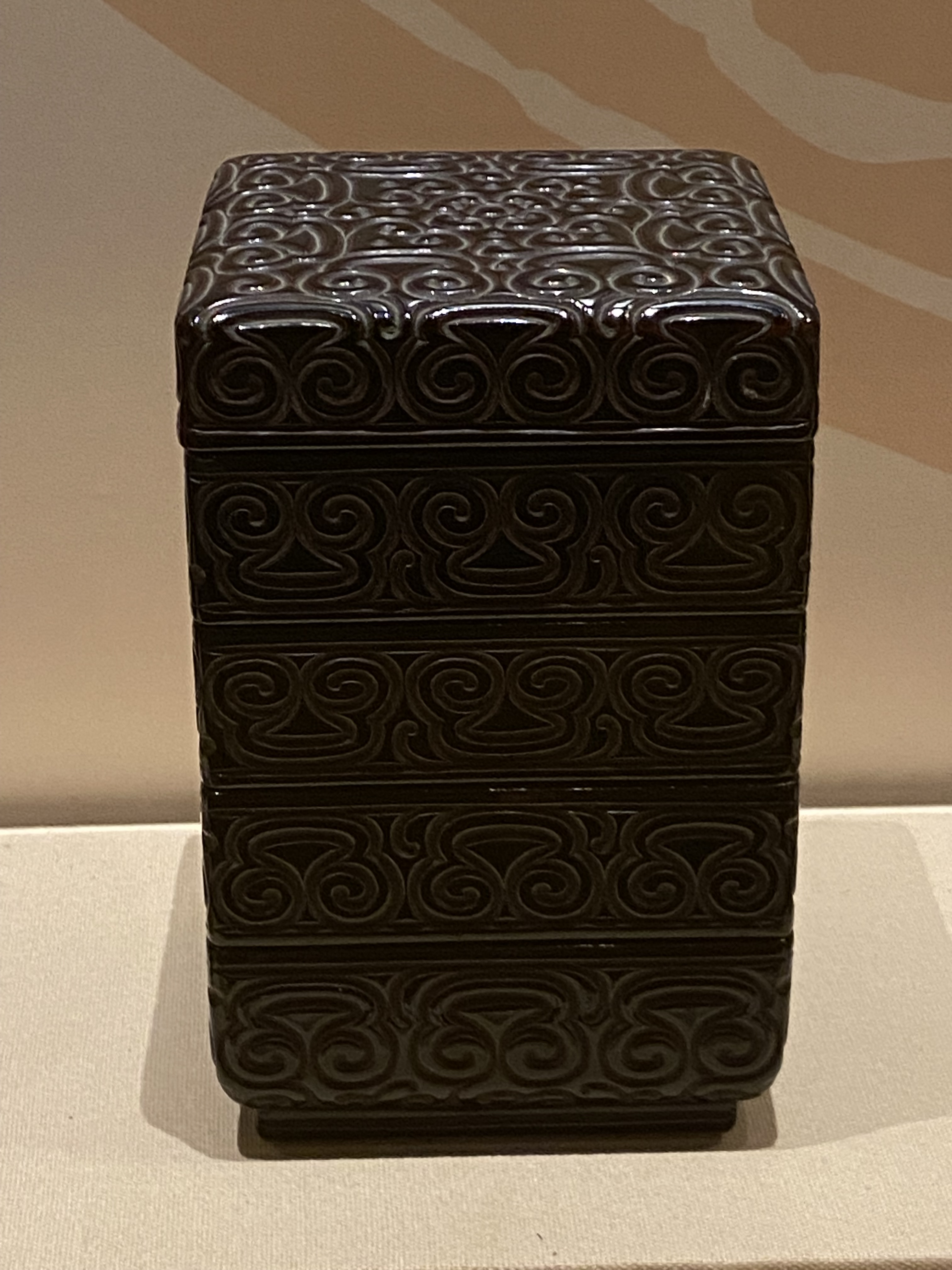 Je croise également un autre des fleurons de la Chine, la laque, qui prend ses racines dans les siècles d’avant notre ère, pour atteindre ce raffinement que l’on connaît. Par exemple cet objet étonnant, une « lunch box » comme nous dirions maintenant, faite de plusieurs compartiments pour cloisonner la nourriture et les différentes saveurs. Incroyable… J’en veux une !
