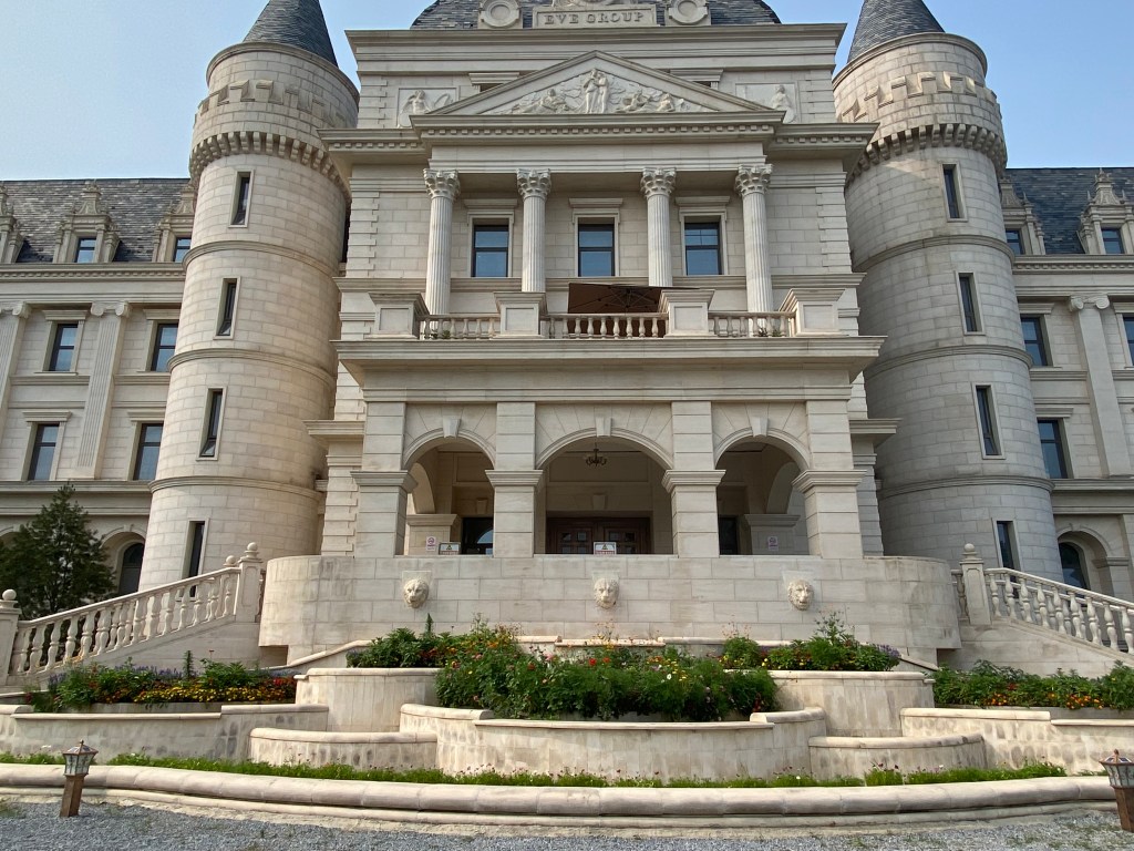 Tout d’abord ces bâtiments néo-classiques qui ne dépareraient pas en Europe. Pierre blanche, gris des tuiles, édifices imposants, nous sommes en limite de Chambord, mâtiné d’un je ne sais quoi de toutes les époques architecturales européennes. Une réinterprétation locale qui a du chien, encadrée par une nature encore verdoyante, avec des fleurs qui sont bien belles malgré les boutoirs de la chaleur.