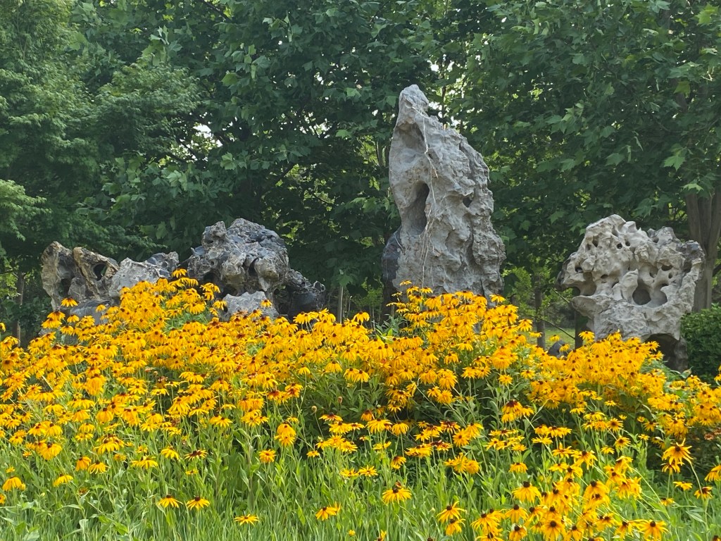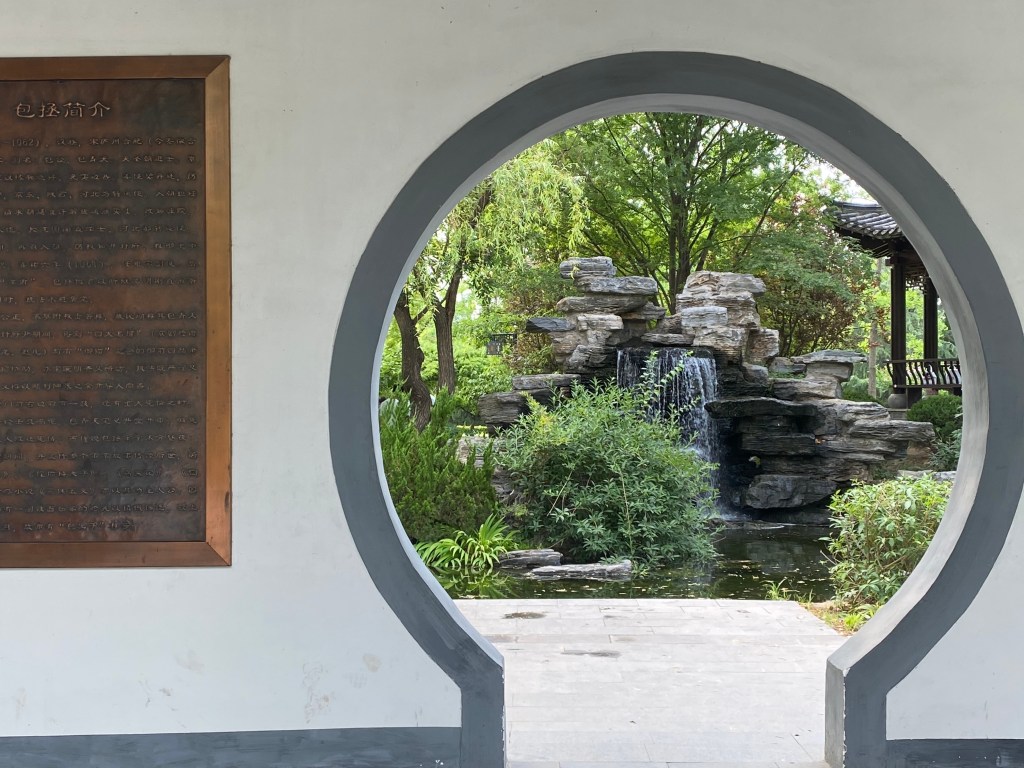 Vient ensuite le jardin de Hefei, ville de l’Anhui, province du sud. Pierre grise adossée à la poésie de tous ces arbres verts.