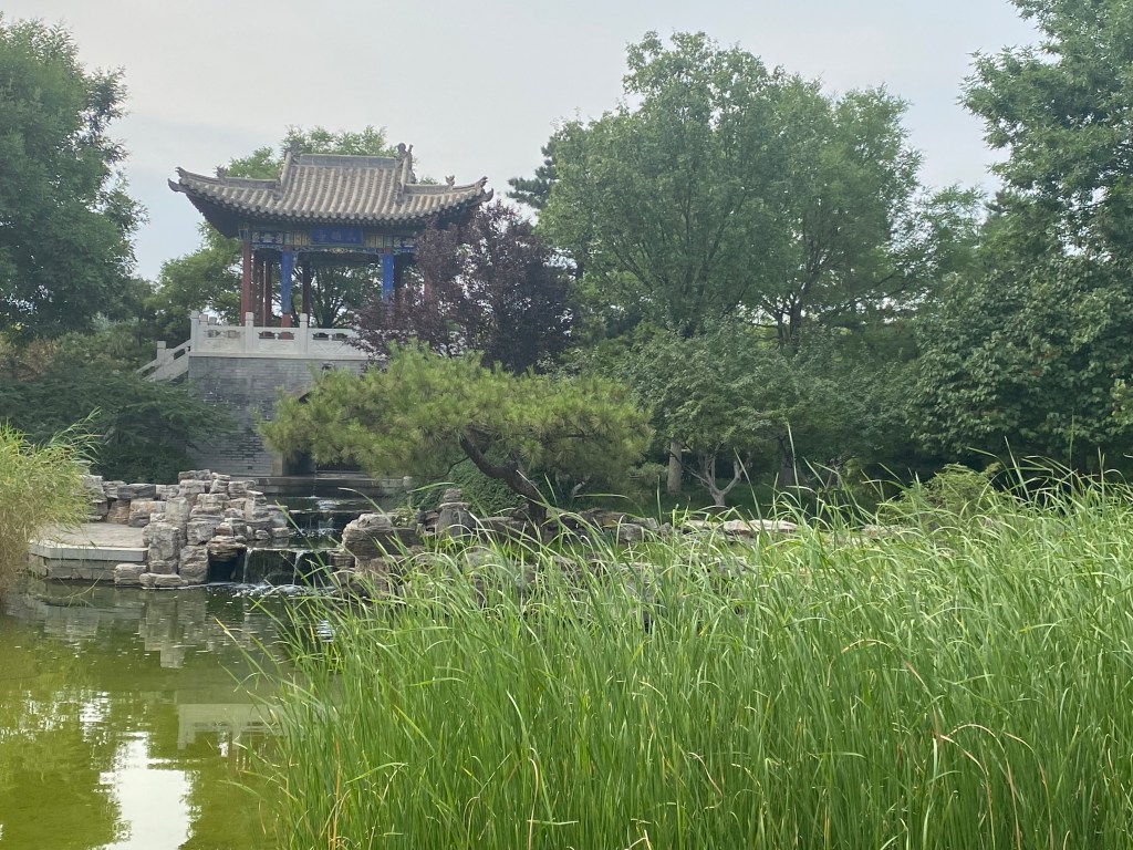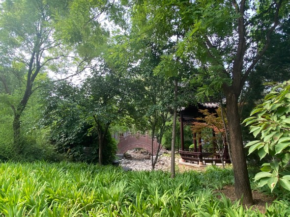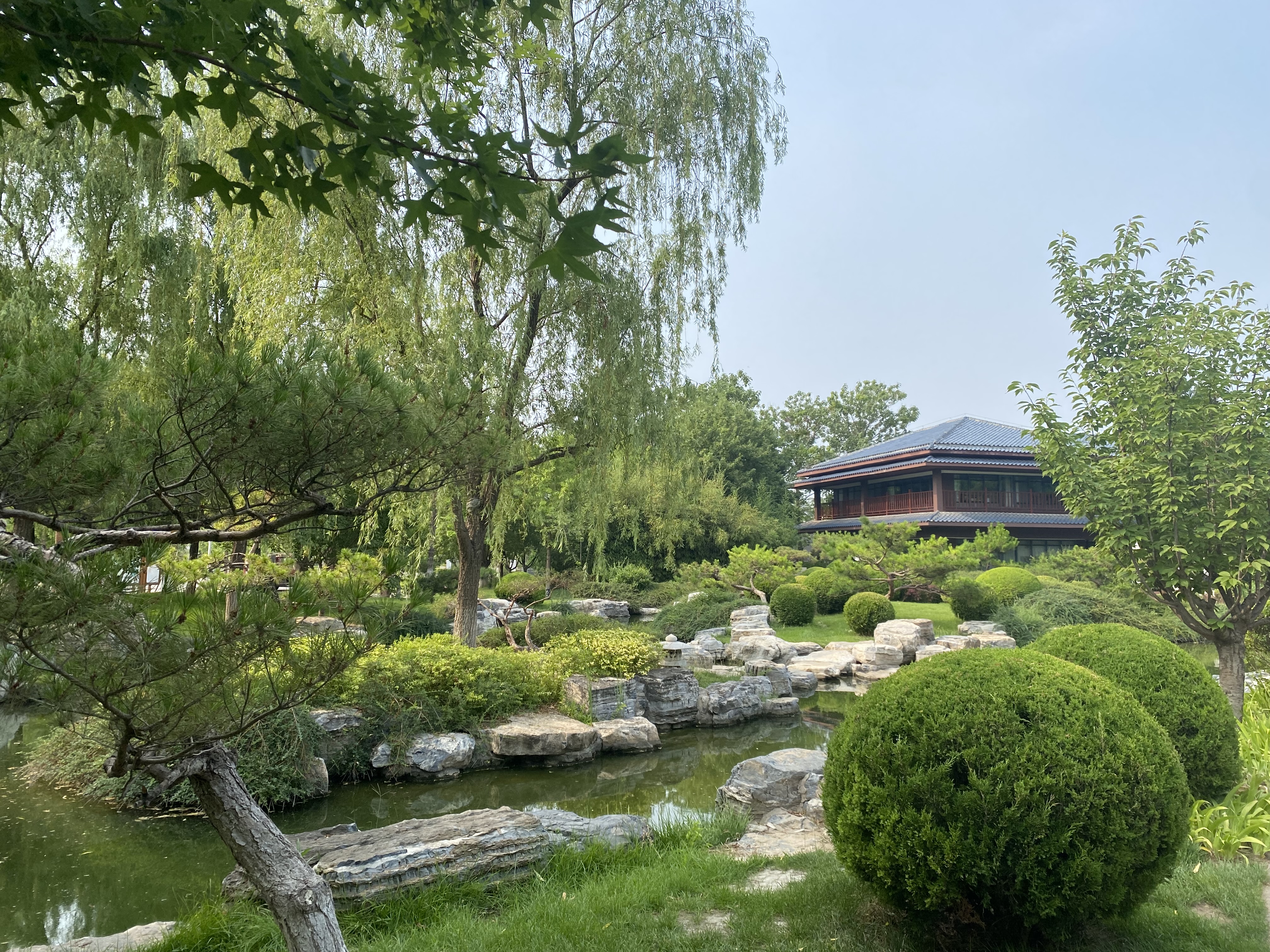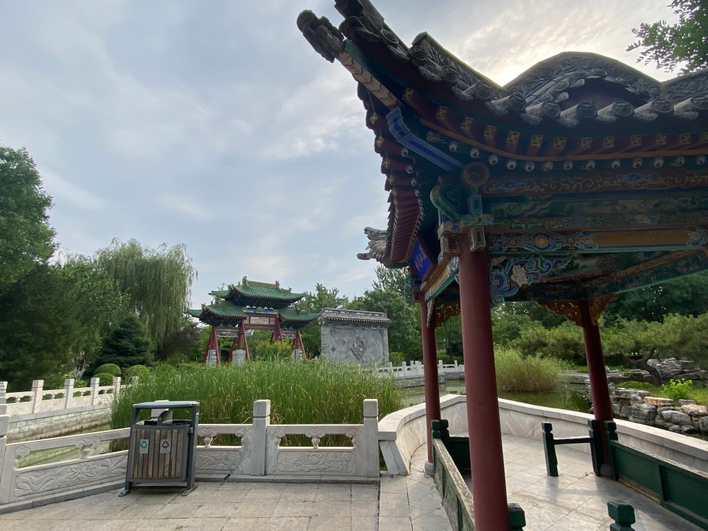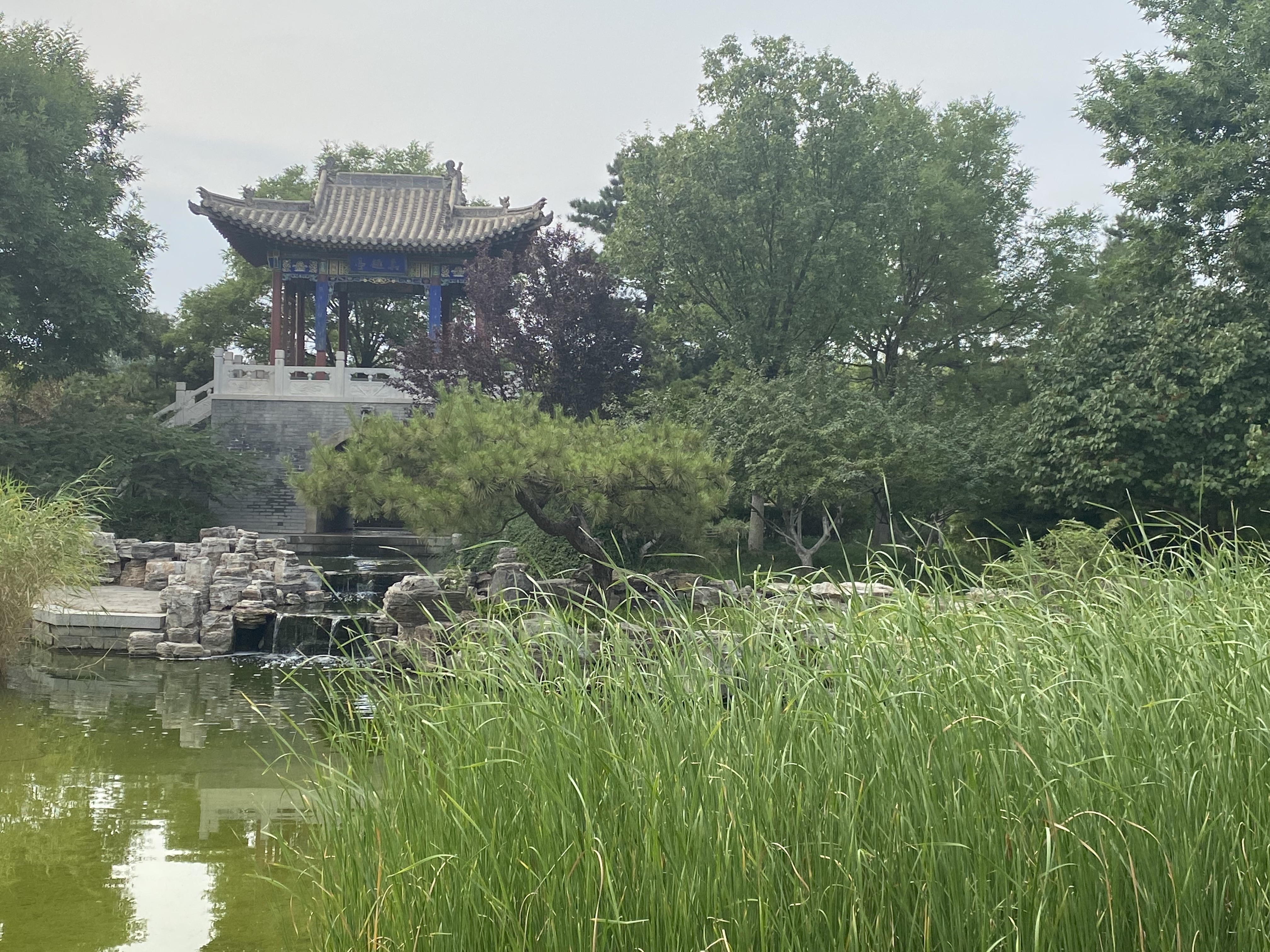 Je vous invite à me suivre dans un des plus grands parcs de Pékin, 267 hectares ouverts au public et 513 hectares en tout, conçu en 2013 pour la neuvième exposition internationale de jardins en Chine, le long de la rivière Yongding. Il est agencé autour de micro-jardins censés représenter 69 villes chinoises et 37 villes du monde. Tout un projet assez enthousiasmant pour le visiteur, d’autant plus que le parc est presque entièrement pour moi seule. Au vu des distances, de la chaleur et de mon smartphone en bout de vie de batterie, surtout, j’ai été obligée de rebrousser chemin après avoir arpenté environ 1/5e du parc. Je reviendrai. Mais je vous livre ici le début de mon exploration.