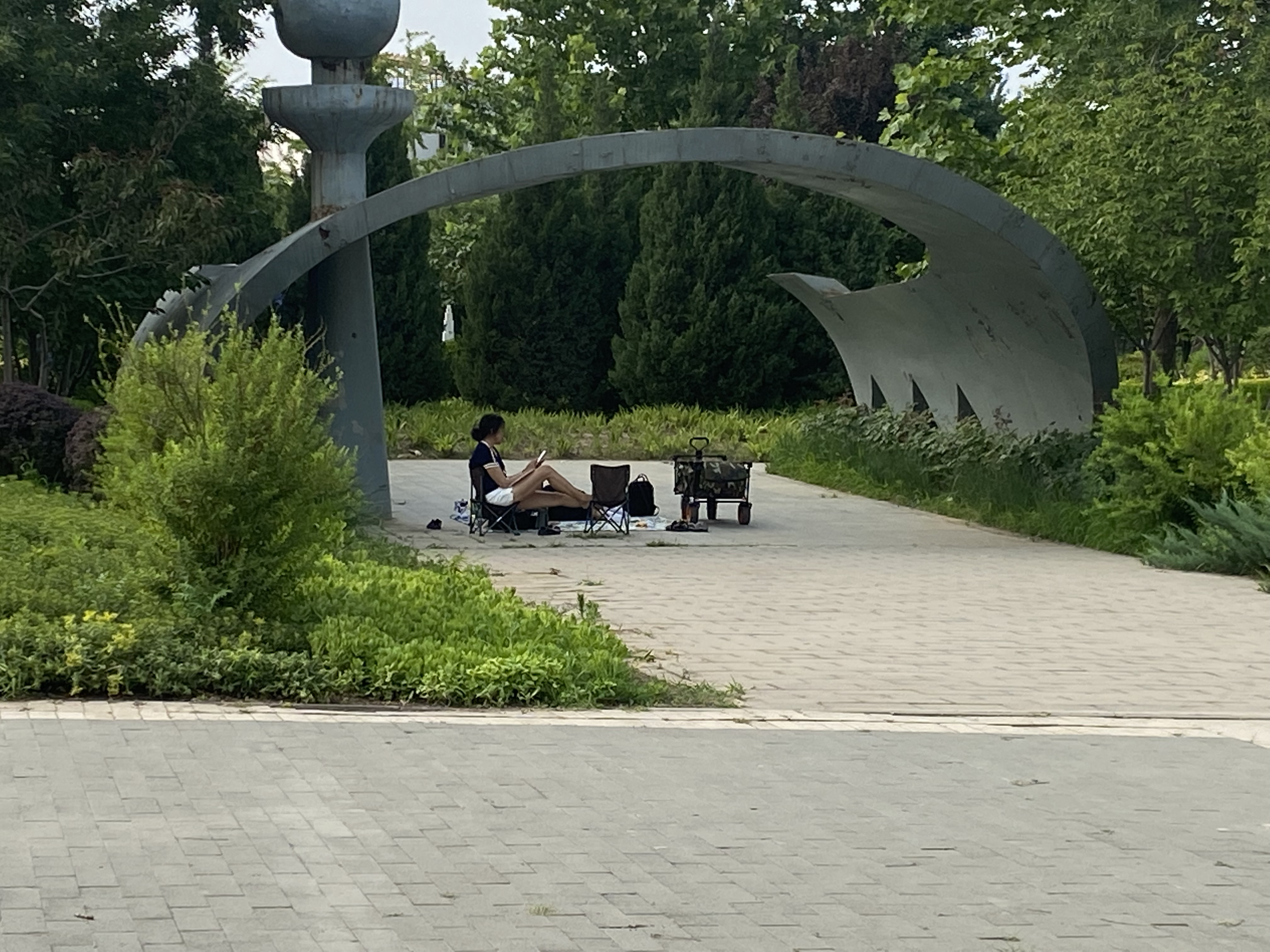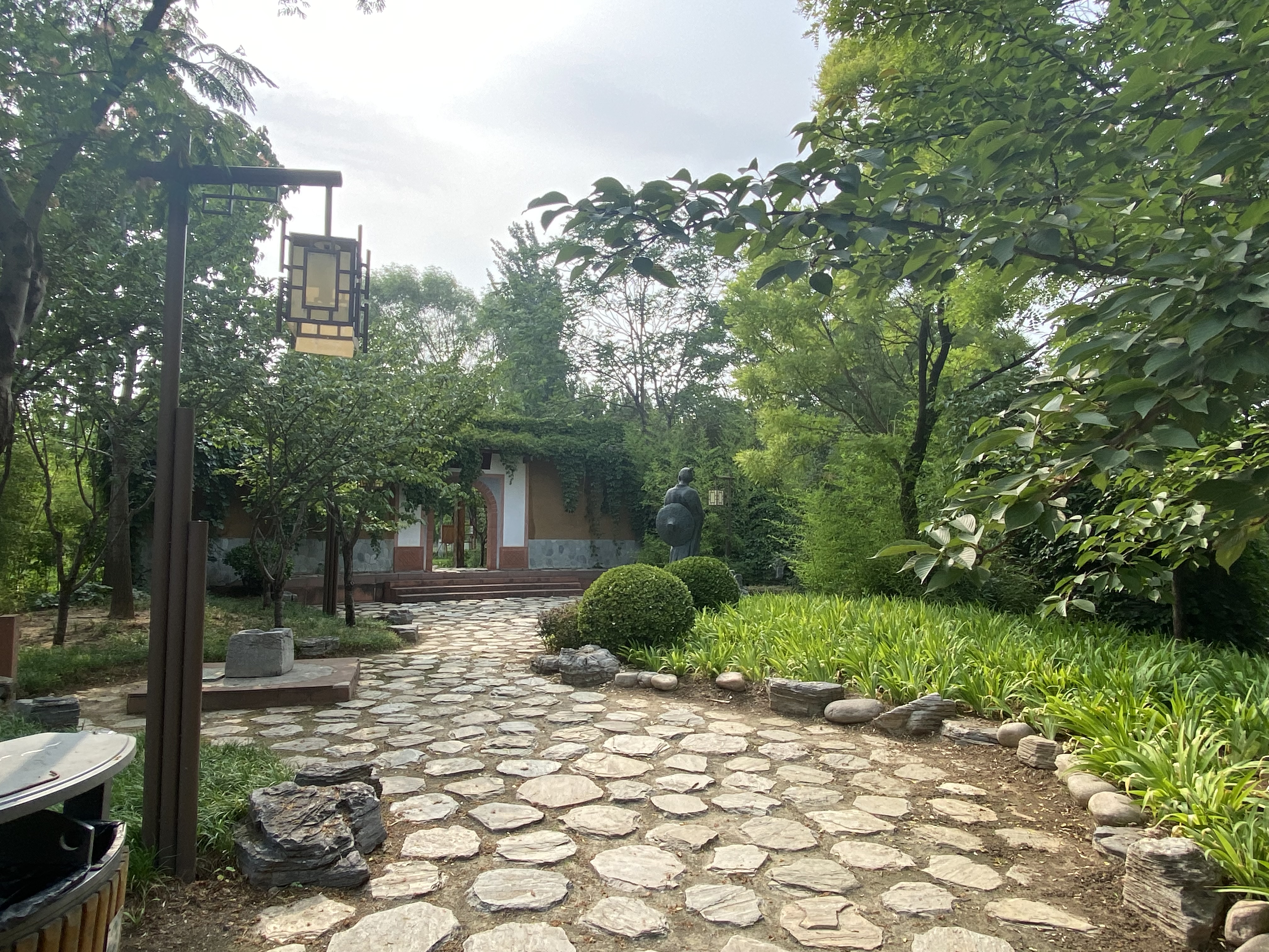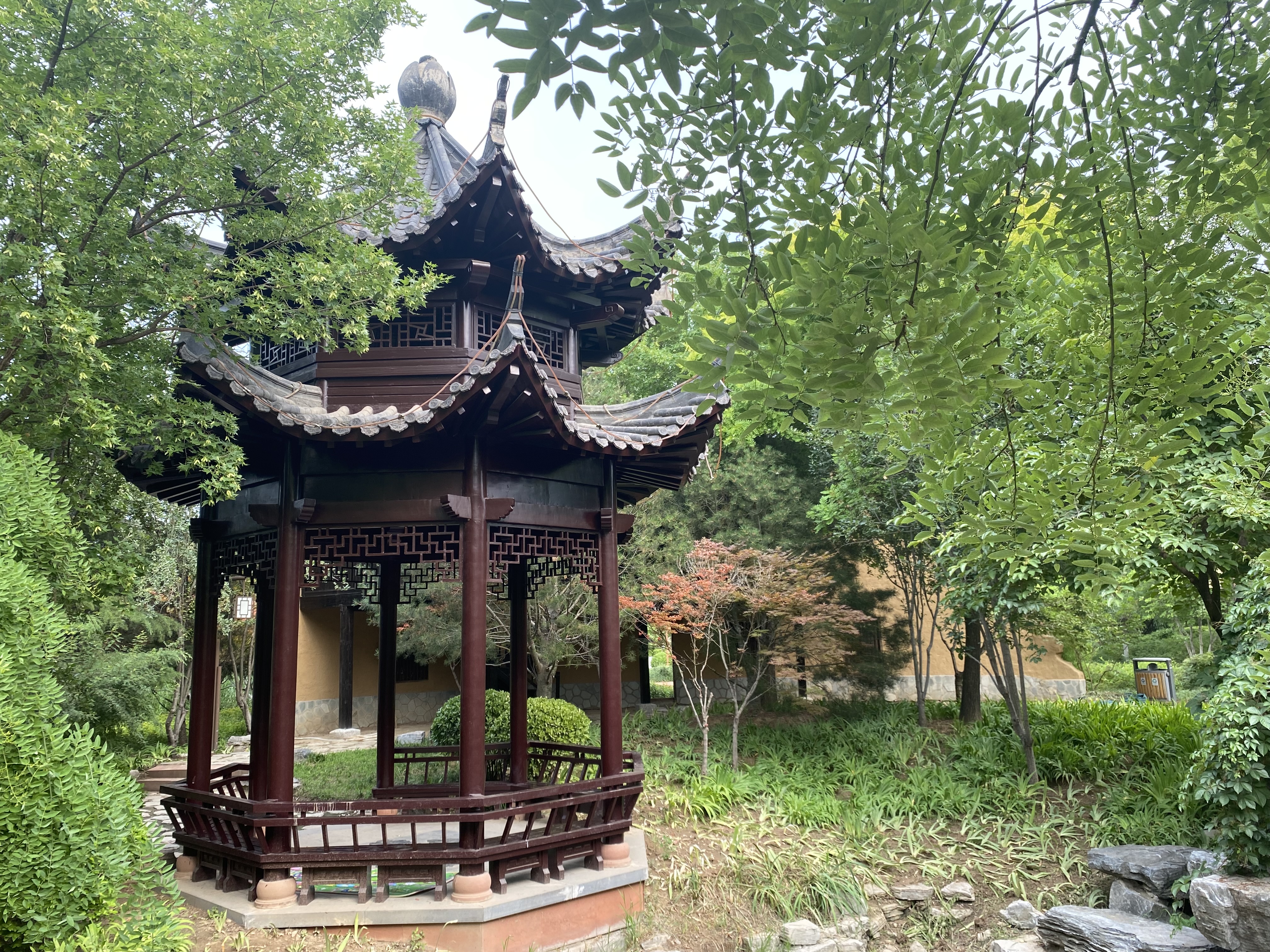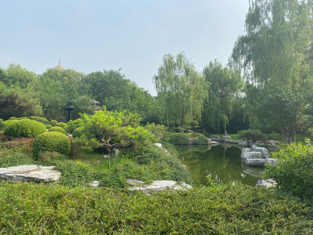 Je vous invite à me suivre dans un des plus grands parcs de Pékin, 267 hectares ouverts au public et 513 hectares en tout, conçu en 2013 pour la neuvième exposition internationale de jardins en Chine, le long de la rivière Yongding. Il est agencé autour de micro-jardins censés représenter 69 villes chinoises et 37 villes du monde. Tout un projet assez enthousiasmant pour le visiteur, d’autant plus que le parc est presque entièrement pour moi seule. Au vu des distances, de la chaleur et de mon smartphone en bout de vie de batterie, surtout, j’ai été obligée de rebrousser chemin après avoir arpenté environ 1/5e du parc. Je reviendrai. Mais je vous livre ici le début de mon exploration.