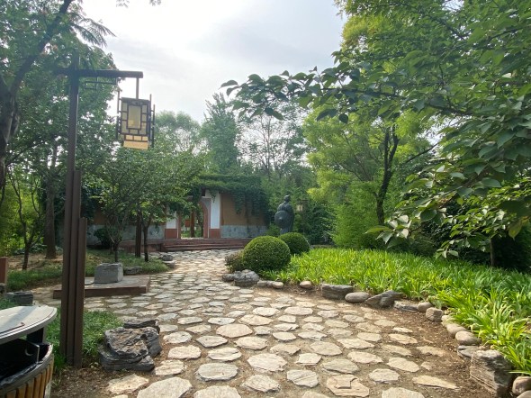 J’ai croisé une de ces travailleuses qui oeuvrent pour rendre ces endroits plus beaux, et j’ai eu avec elle un début de discussion : voyant que j’étais accablée par la chaleur, elle m’a dit « 很热吗? », soit « il fait chaud, non ? Ce à quoi j’ai répondu, car cela me semblait une évidence « 对很热你说得对 » « Oui vous avez raison il fait chaud ». Cela doit vous paraître ridicule, mais c’était pour moi une victoire de comprendre une personne de la rue et de répondre, comme disait France Gall « c’est peut-être un détail pour vous, mais pour moi ça veut dire beaucoup ». Toujours est-il que j’affirme et affirme à nouveau que les gens ici sont gentils avec les étrangers. S’ils ont parfois un peu peur (normal, avec ce gouvernement qui matraque que l’horreur, soit le Covid-19, vient de l’étranger), ils se montrent en général tellement aidants. Je ferai ici une parenthèse pour appuyer mon propos : le même week-end, je me suis rendue dans un petit magasin de primeurs, où j’allais souvent prendre mes fruits de la journée avant que notre bureau ne déménage. En entrant dans la boutique, la vendeuse m’a saluée d’un « 好久不见 » (hao jiu bu jian, cela fait longtemps que nous ne nous sommes pas vues). Un accueil chaleureux et sincère qui m’est allé droit au coeur. Mais je m’égare. Revenons à ce beau jardin.