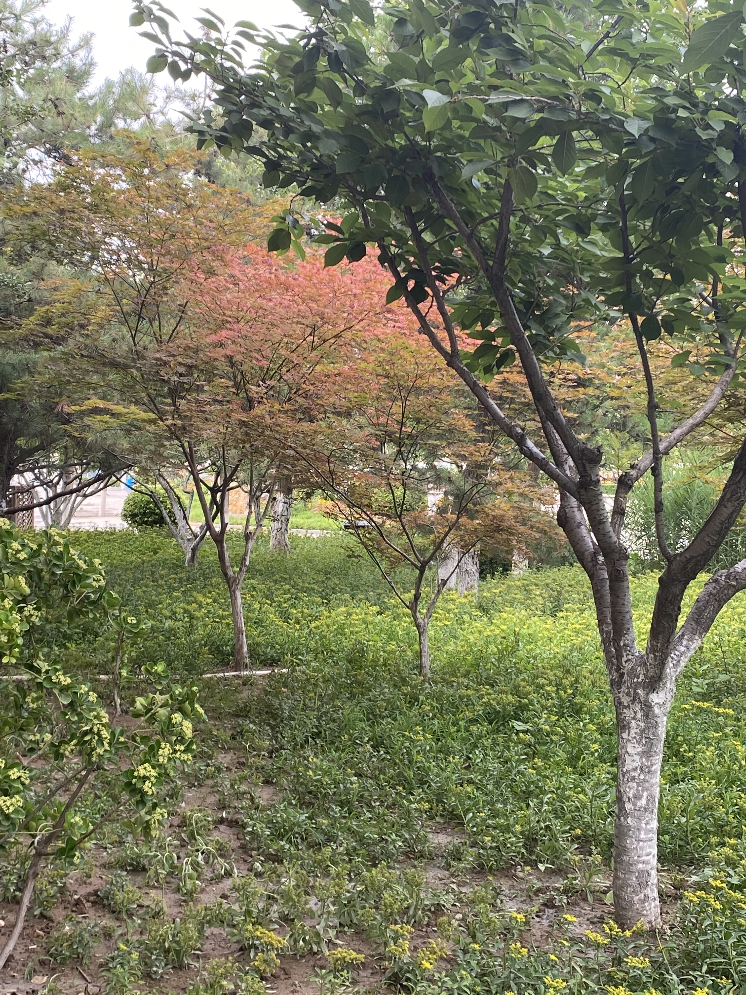 Le jardin de Hefei (je pense que c’est celui-là), était sans doute l’un des plus beaux croisés sur ma route, ourlé de délicates frondaisons vert tendre ou rousses, dans le ciel qui laissait enfin apparaître son manteau bleu.